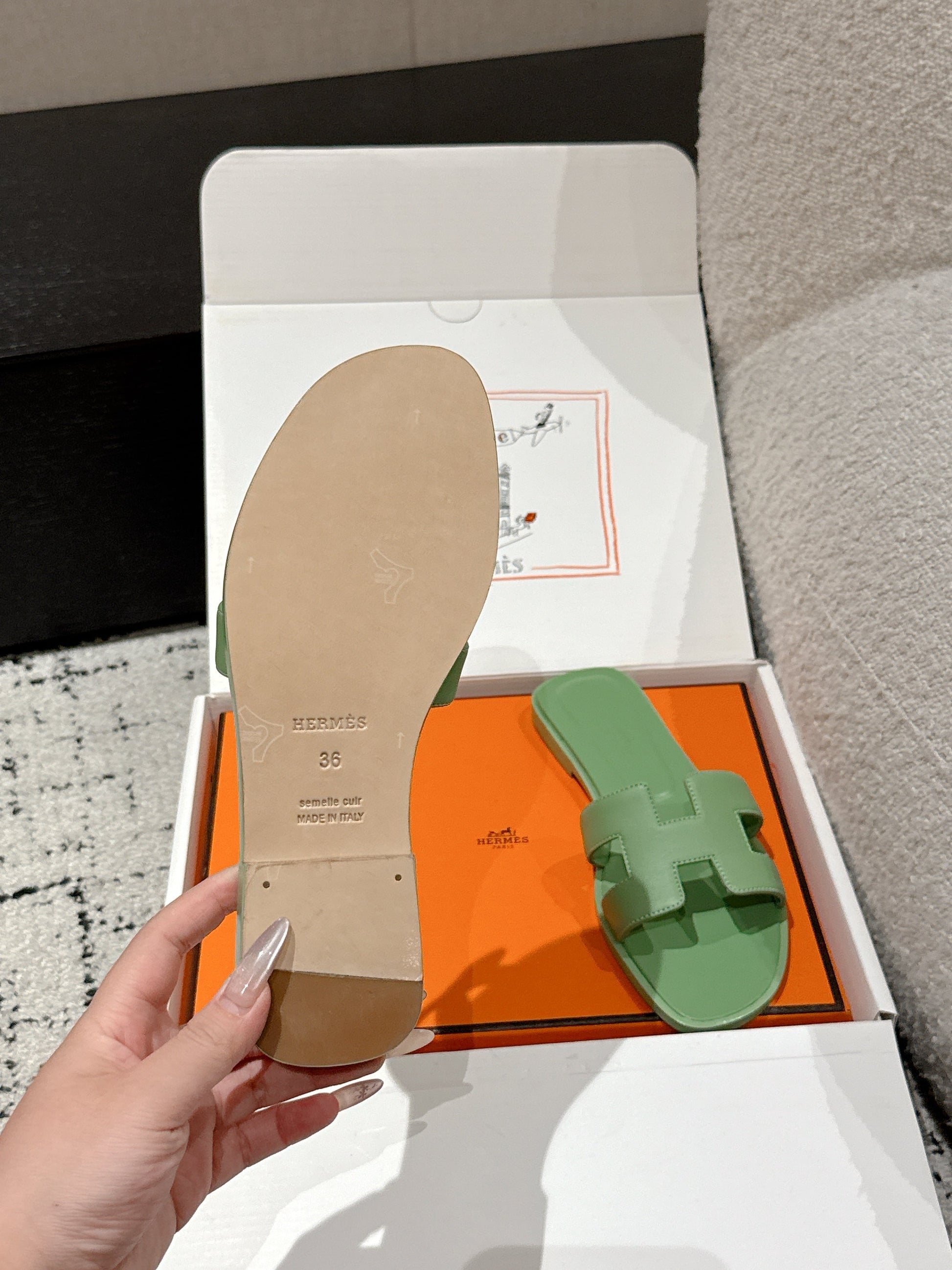 HM 25 Oran Sandal Green Calfskin