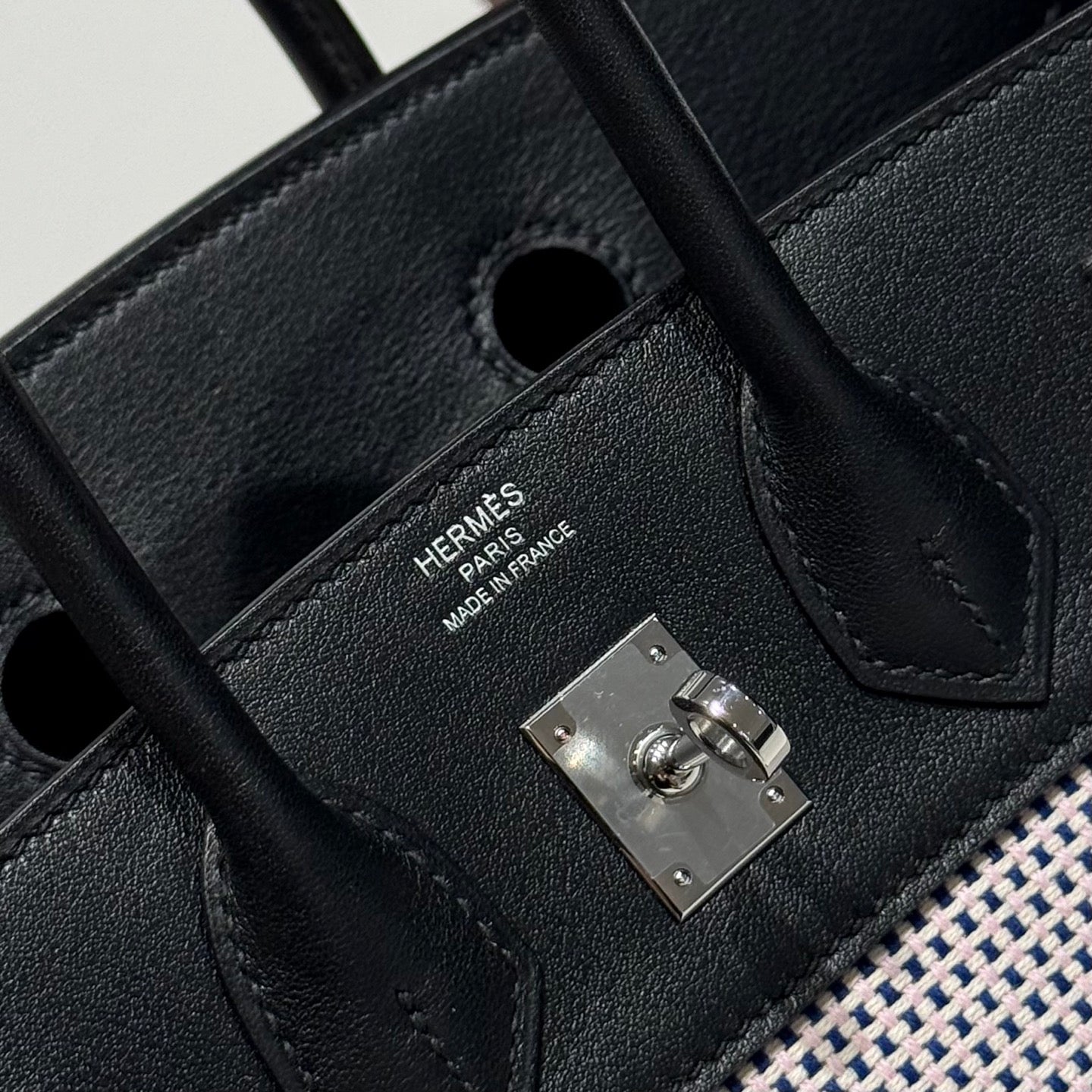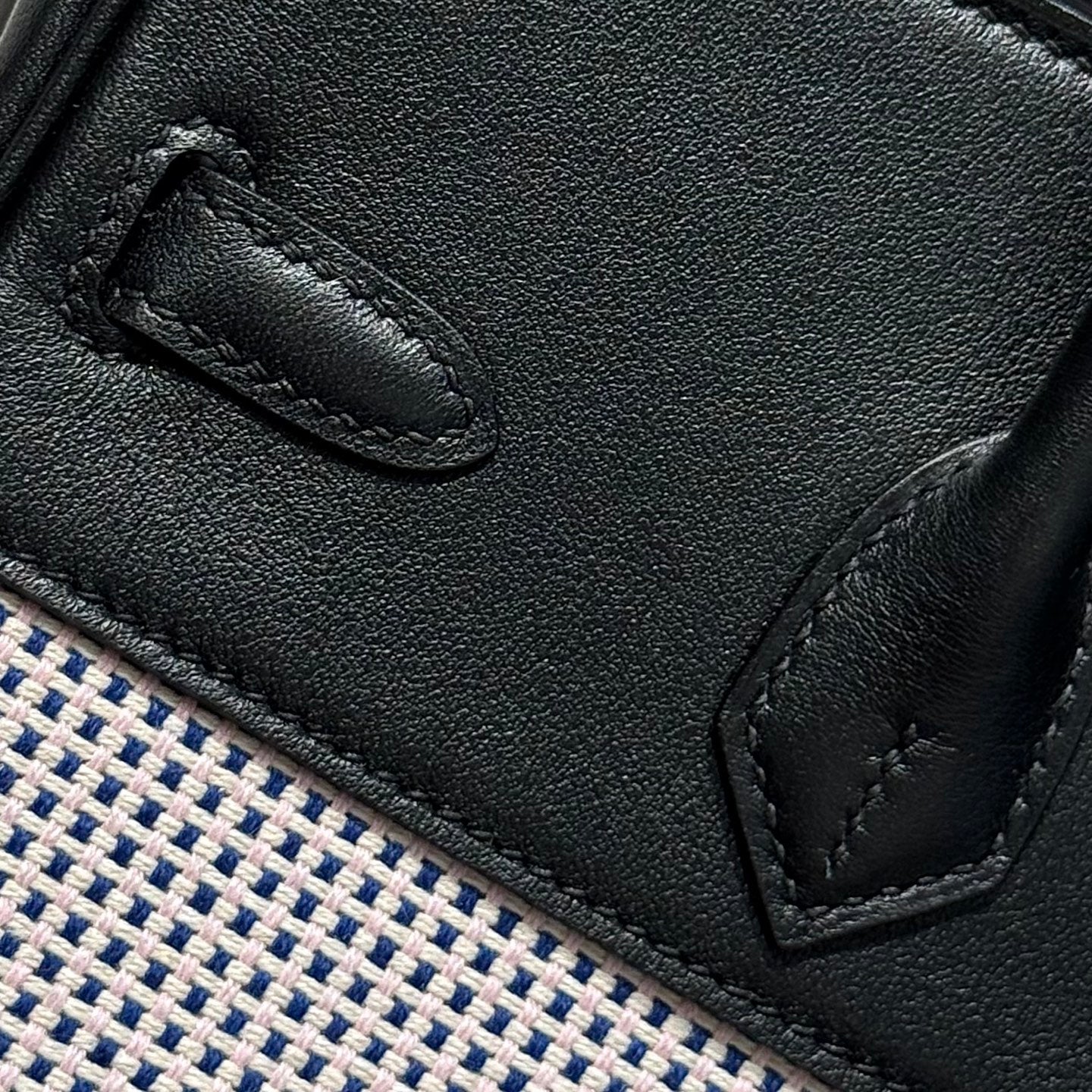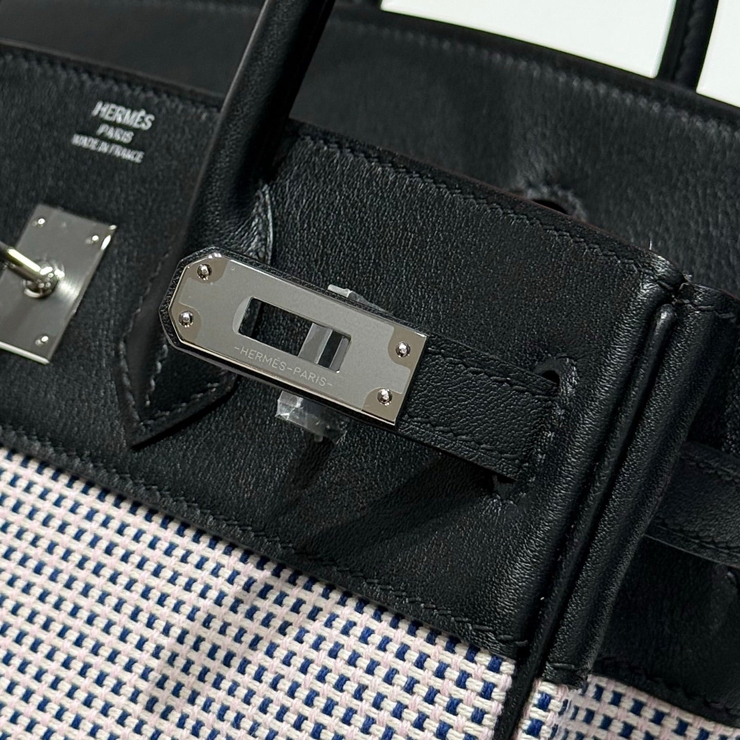 HM Birkin 25cm Black Swift Pink Canvas Silver Hardware