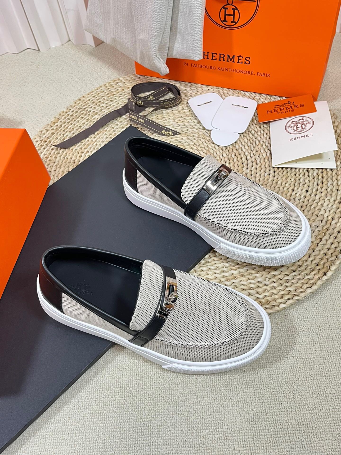HM Buckle Casual Loafer Black Cowhide Cloth 317046