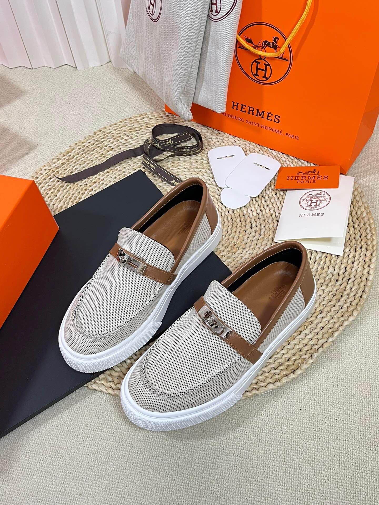 HM Buckle Casual Loafer Brown Cowhide Cloth 317045