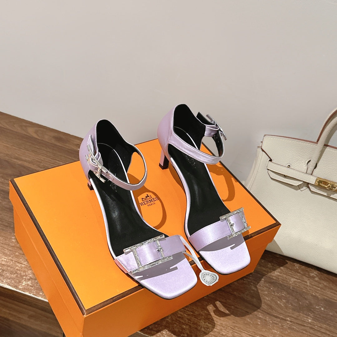 HM Buckle Sandals Purple Calfskin 308181