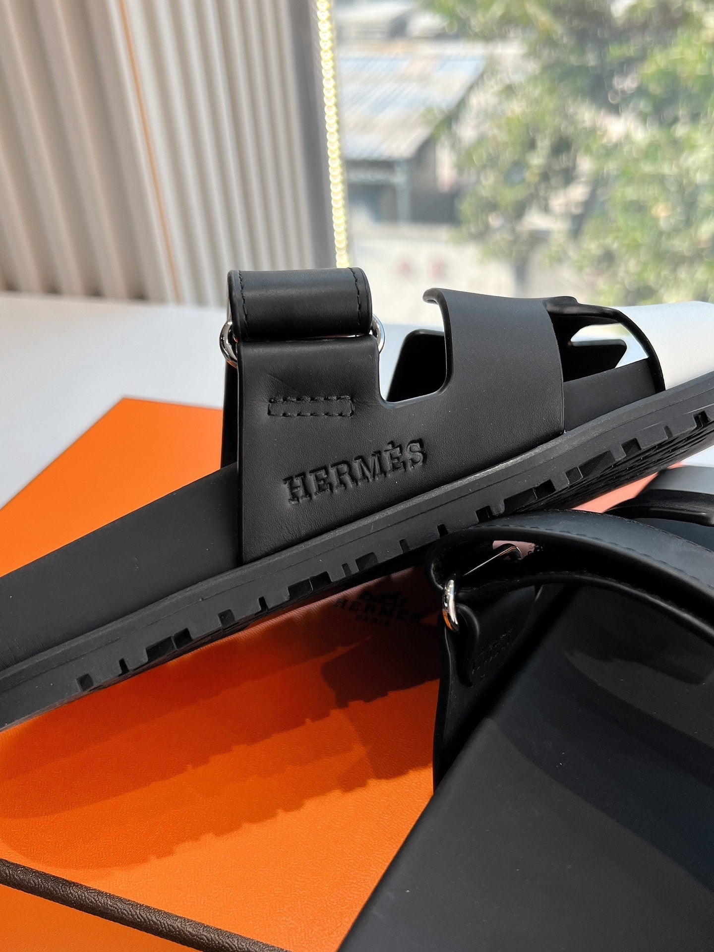 HM Chypre Sandal Black Mix White Calfskin 202814