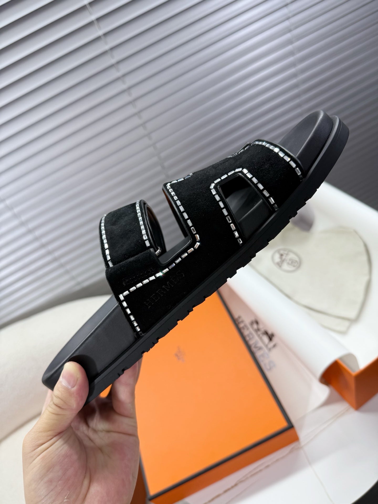 - Material: Suede and Crystals