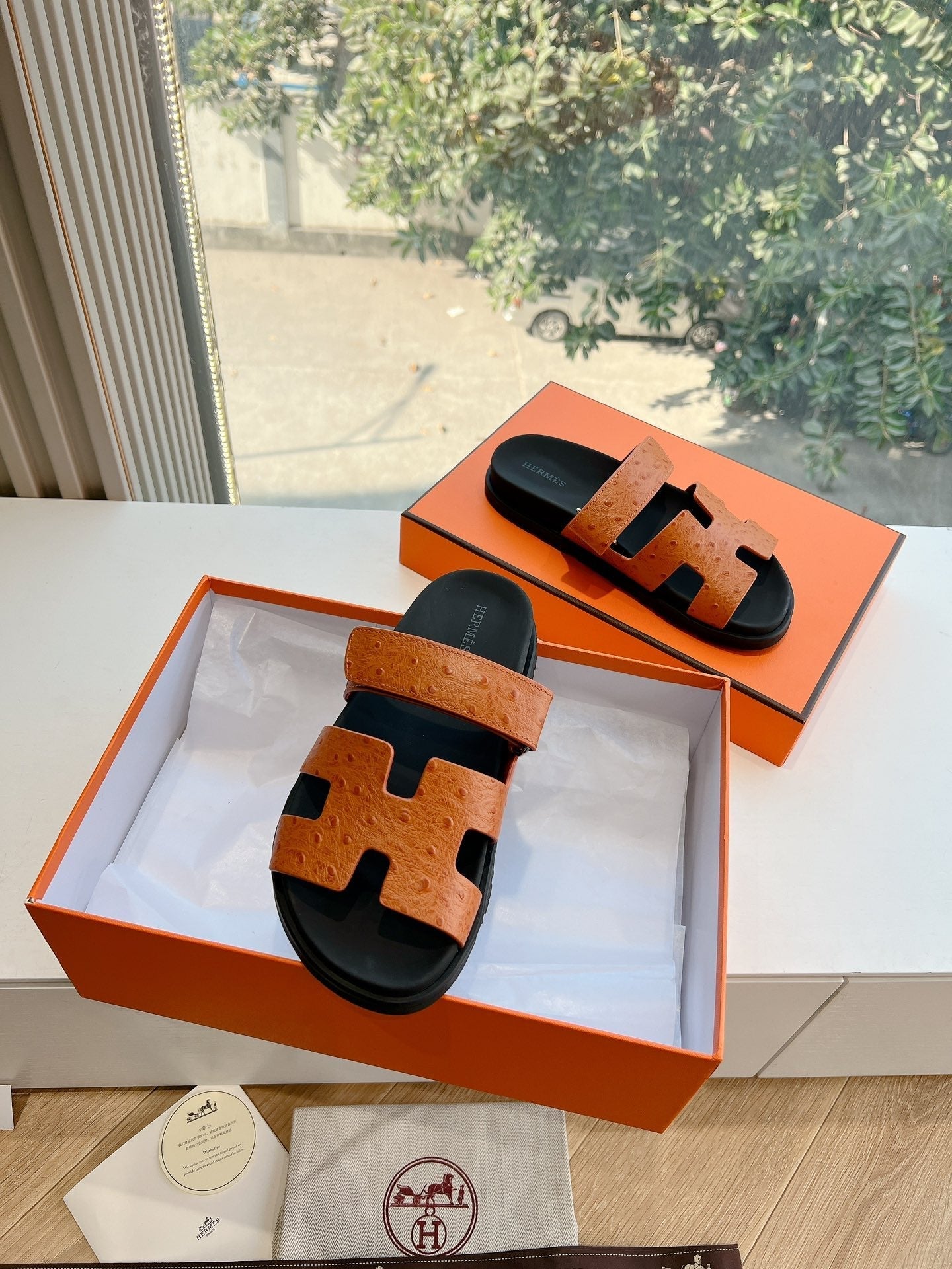 HM Chypre Sandal Brownie Brown Ostrich Leather 202802