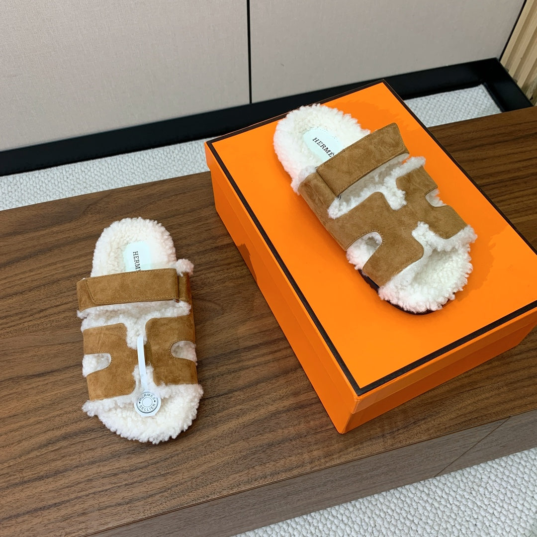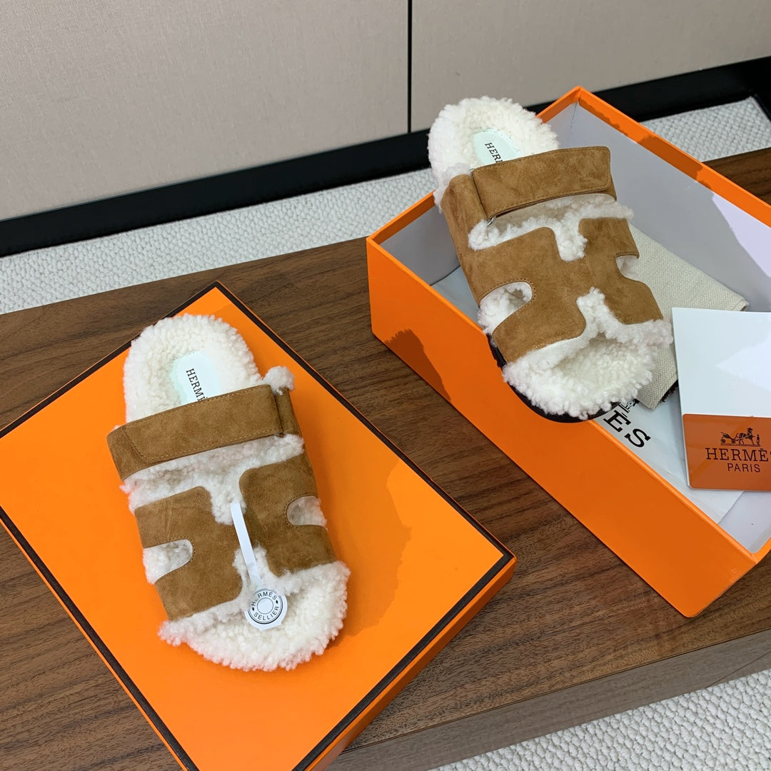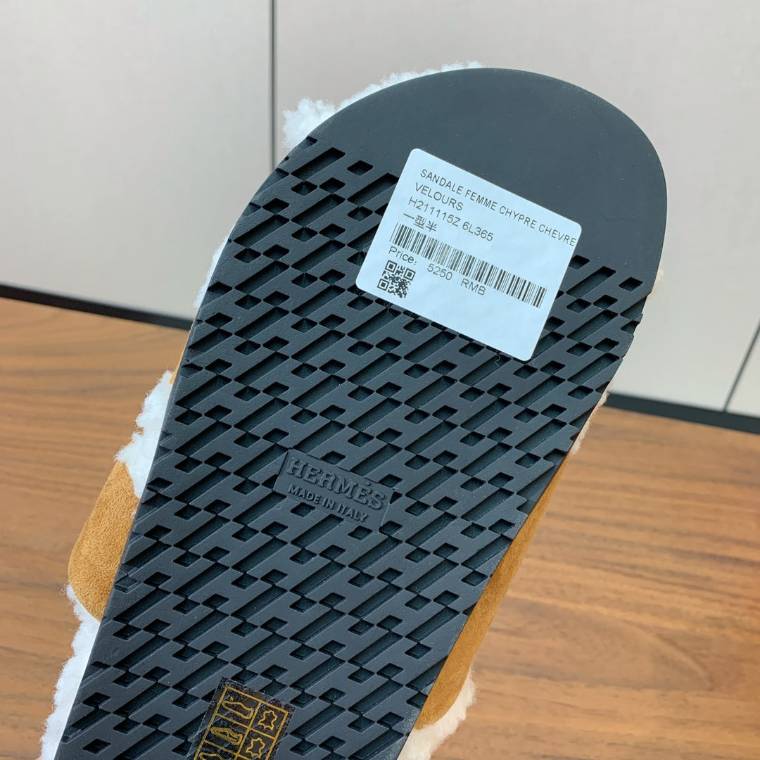 HM Chypre Sandal In Brown Mix White Fleece And Suede 984200