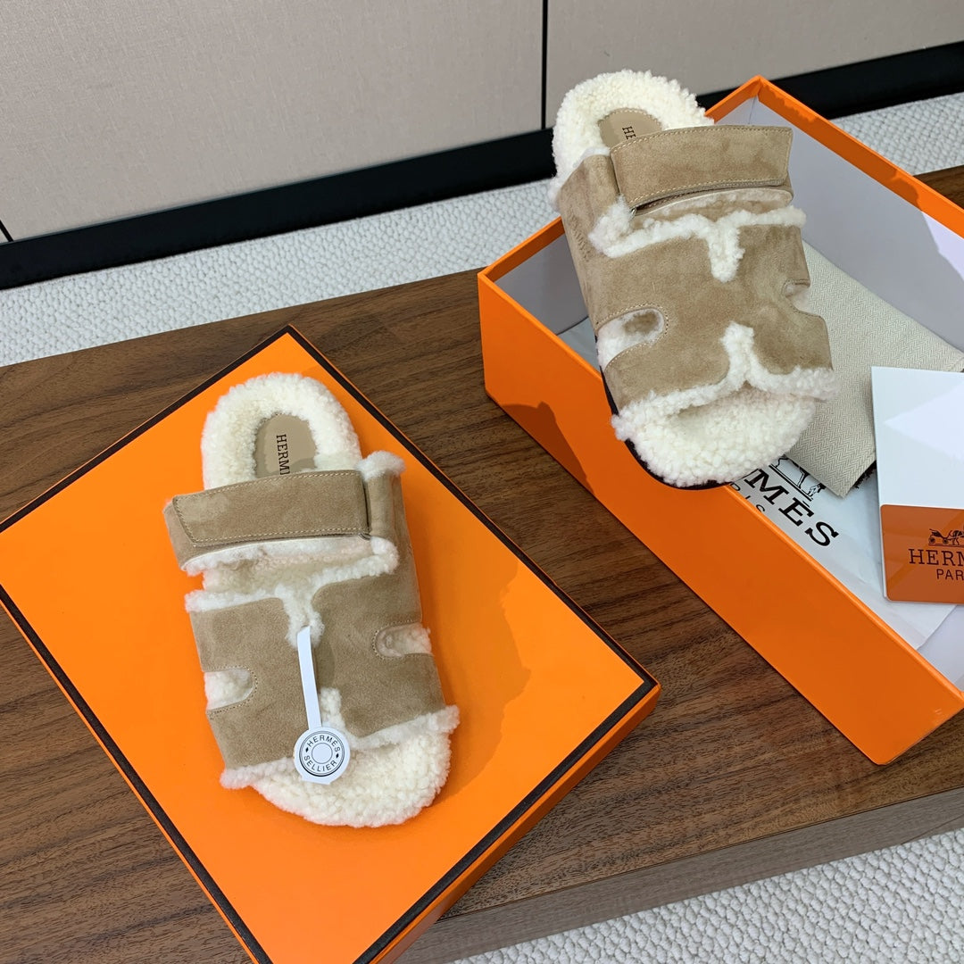 HM Chypre Sandal In Light Brown Mix White Fleece And Suede 984197