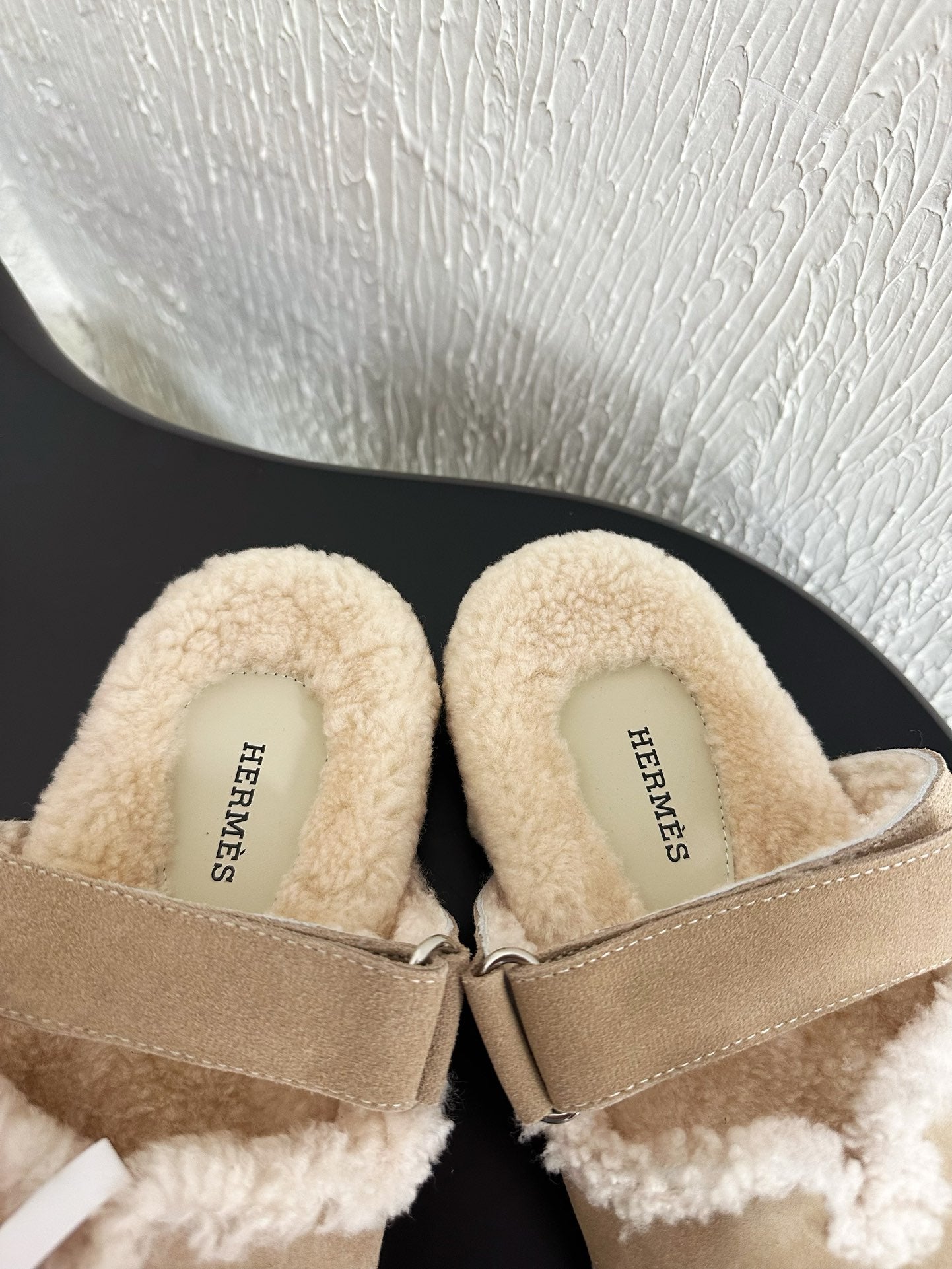 HM Chypre Sandal In Light Brown Mix White Suede And Fleece Lining 961139