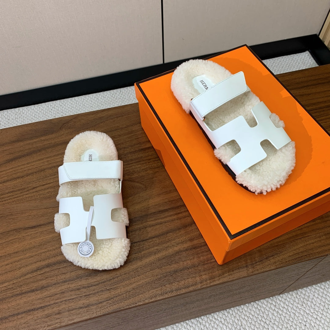 HM Chypre Sandal White Mix Light Beige Wool And Cowhide Lining 984210