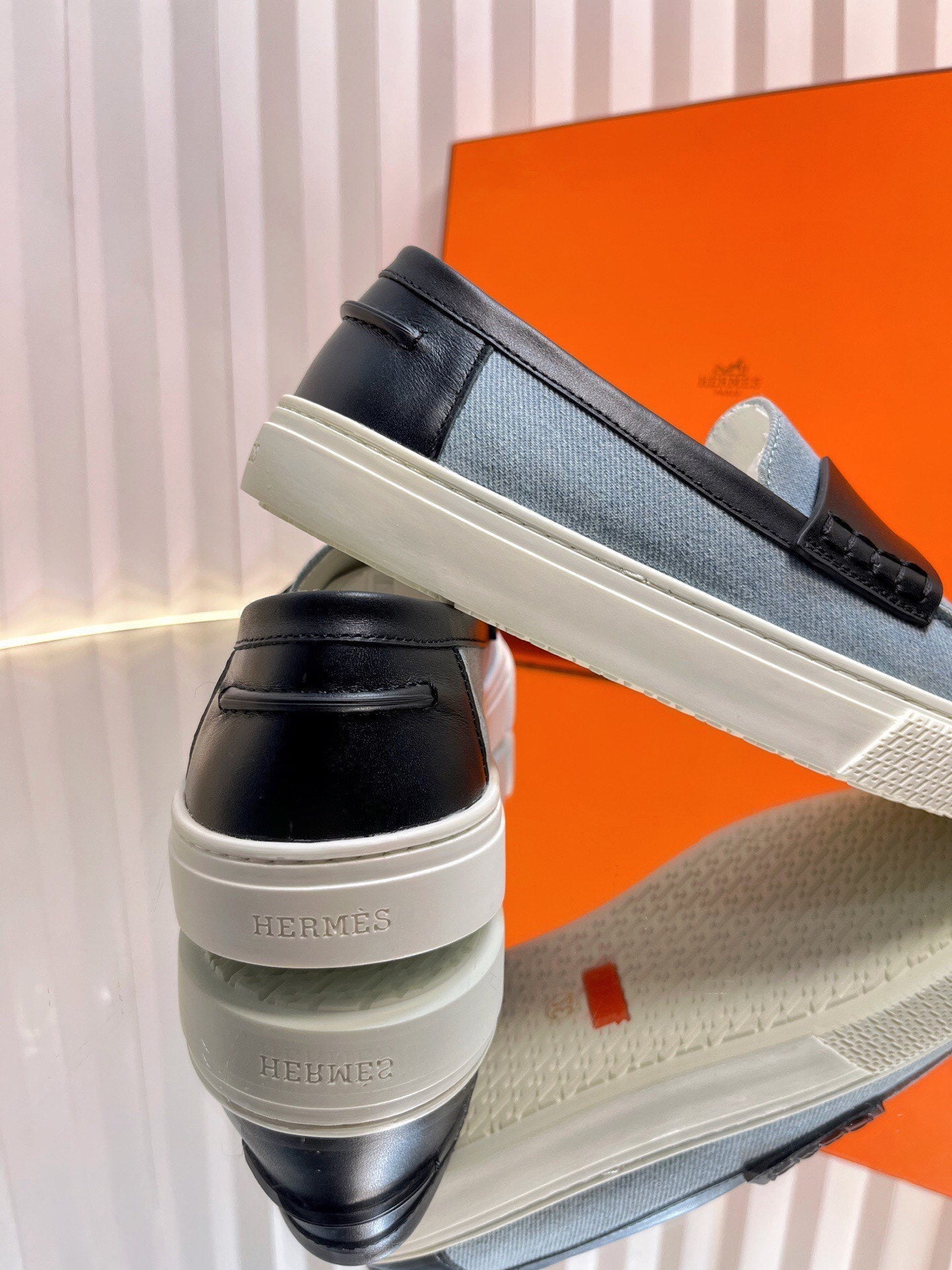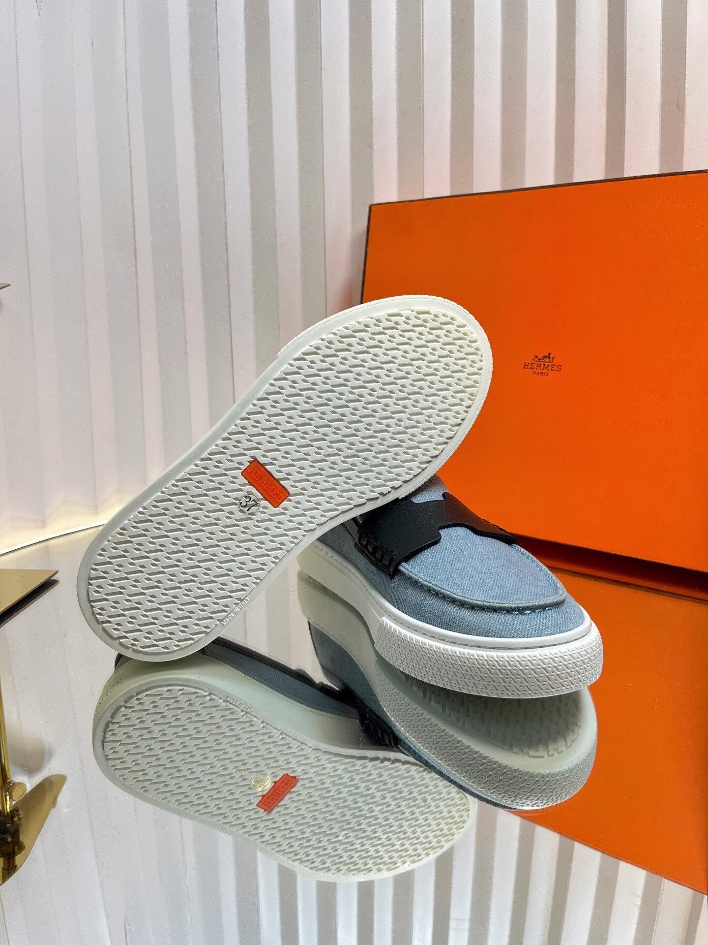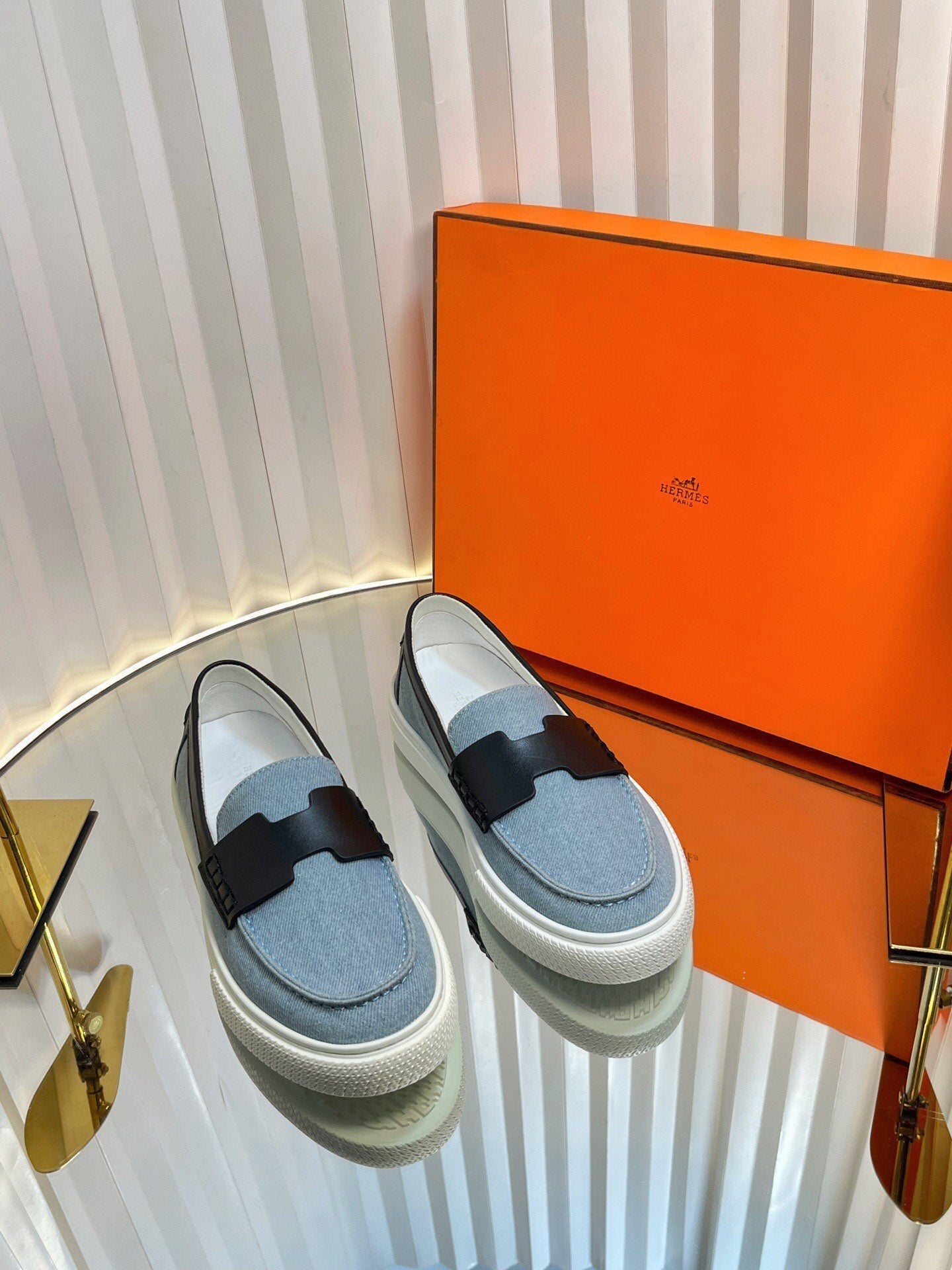 HM Denim Casual Loafer Blue Black Cowhide Cloth 317067