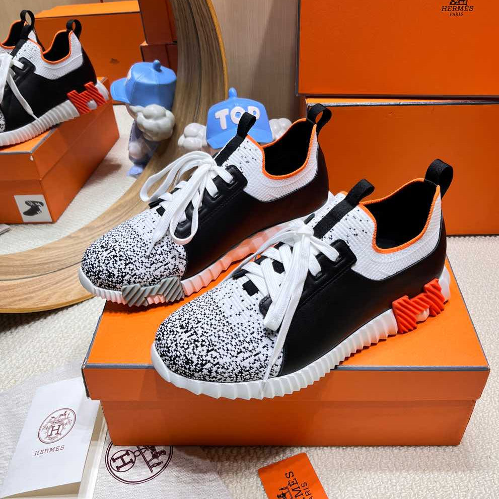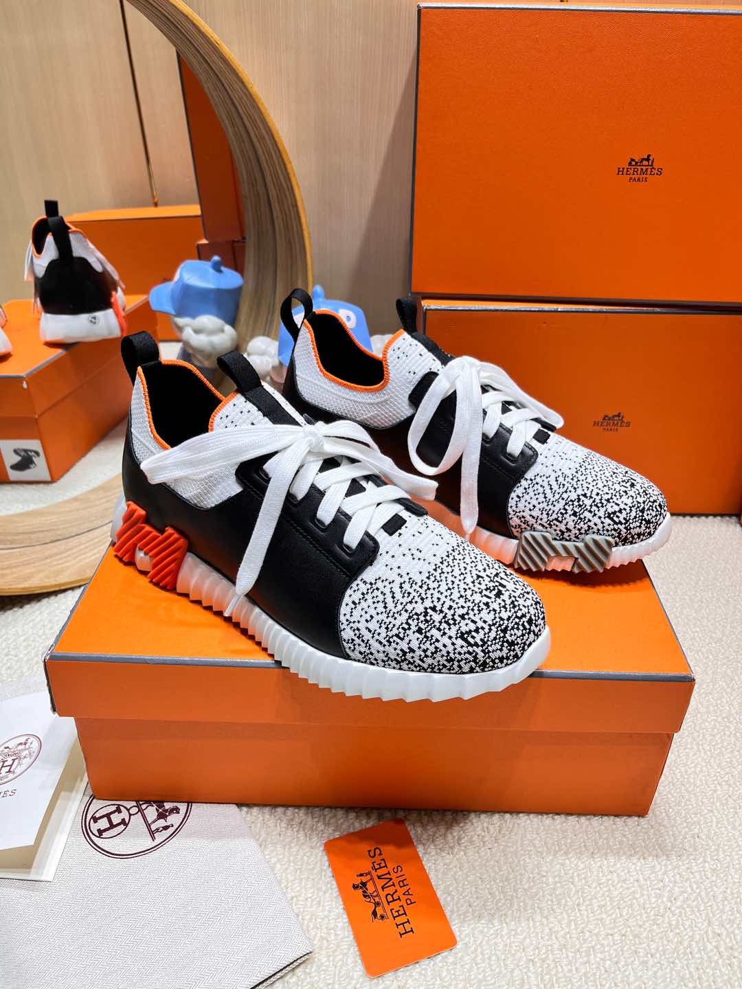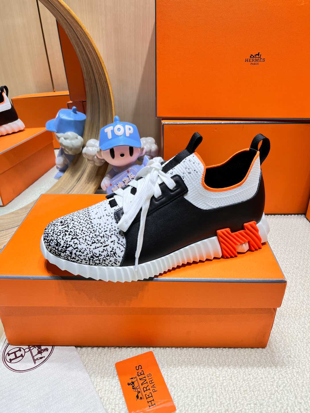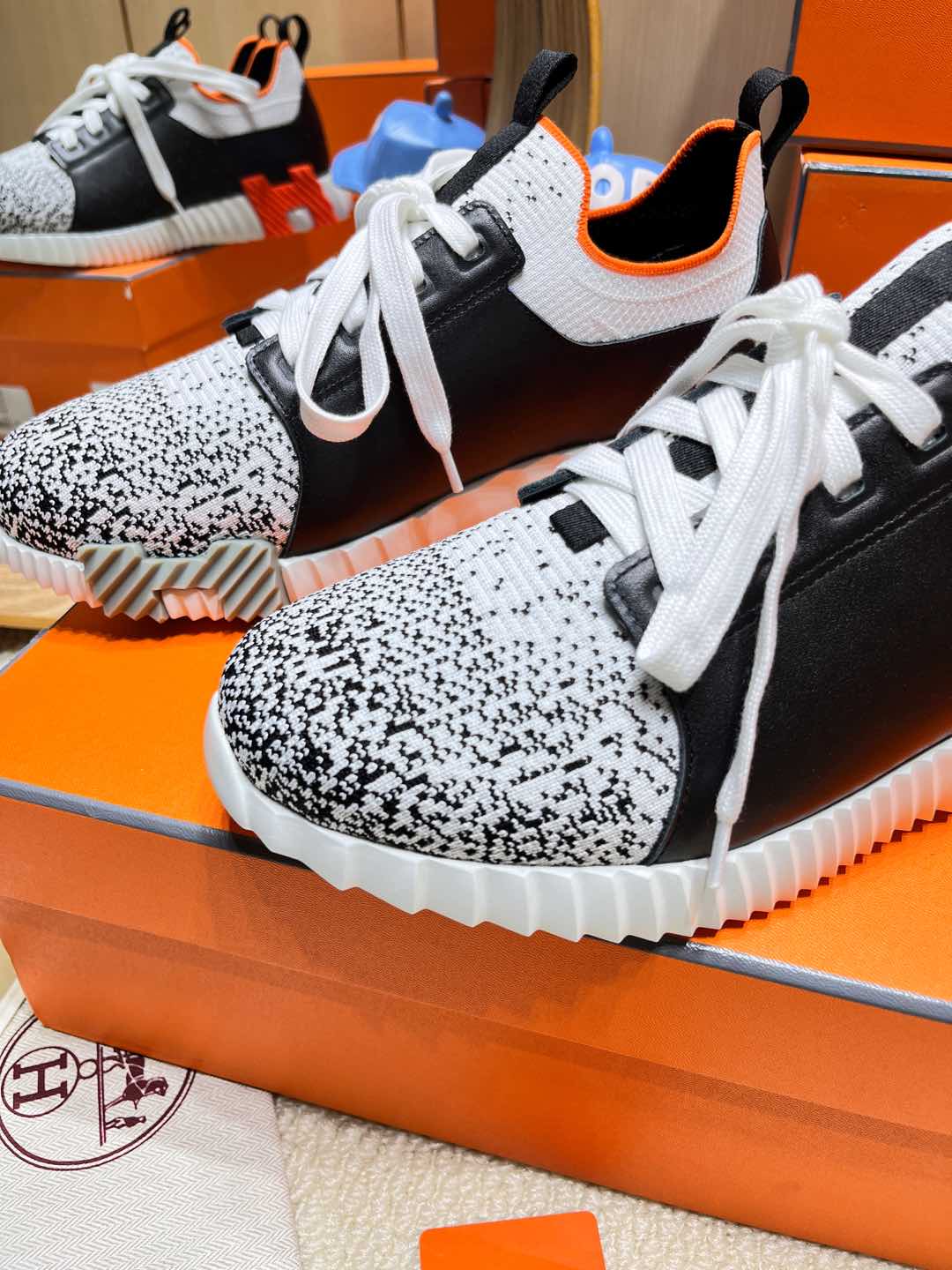 HM Depart slip-on Sneaker White mix Black Knitted fabric and Calfskin 206321