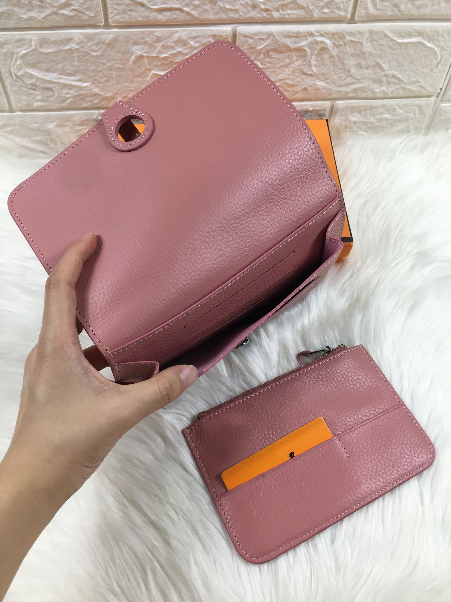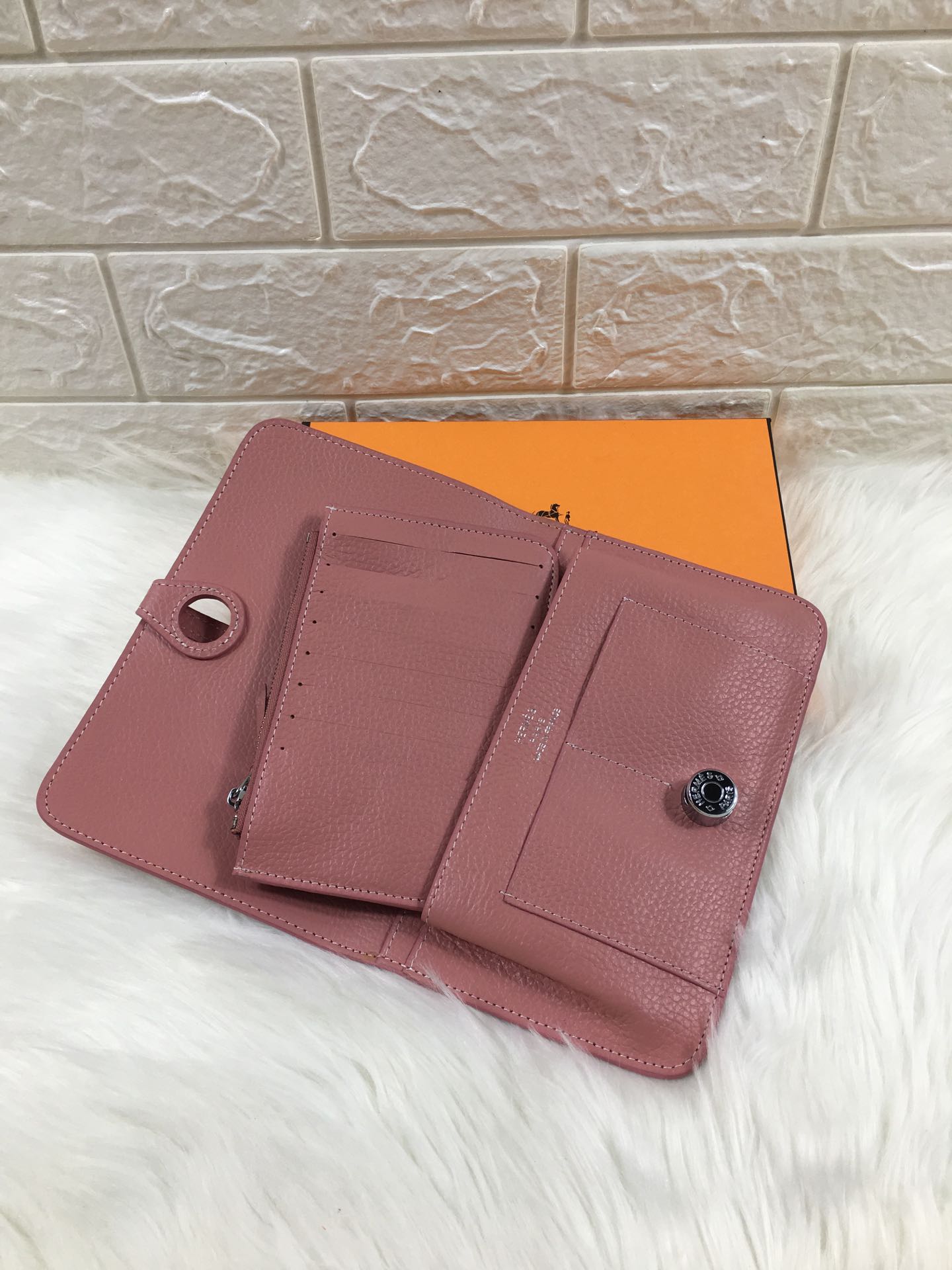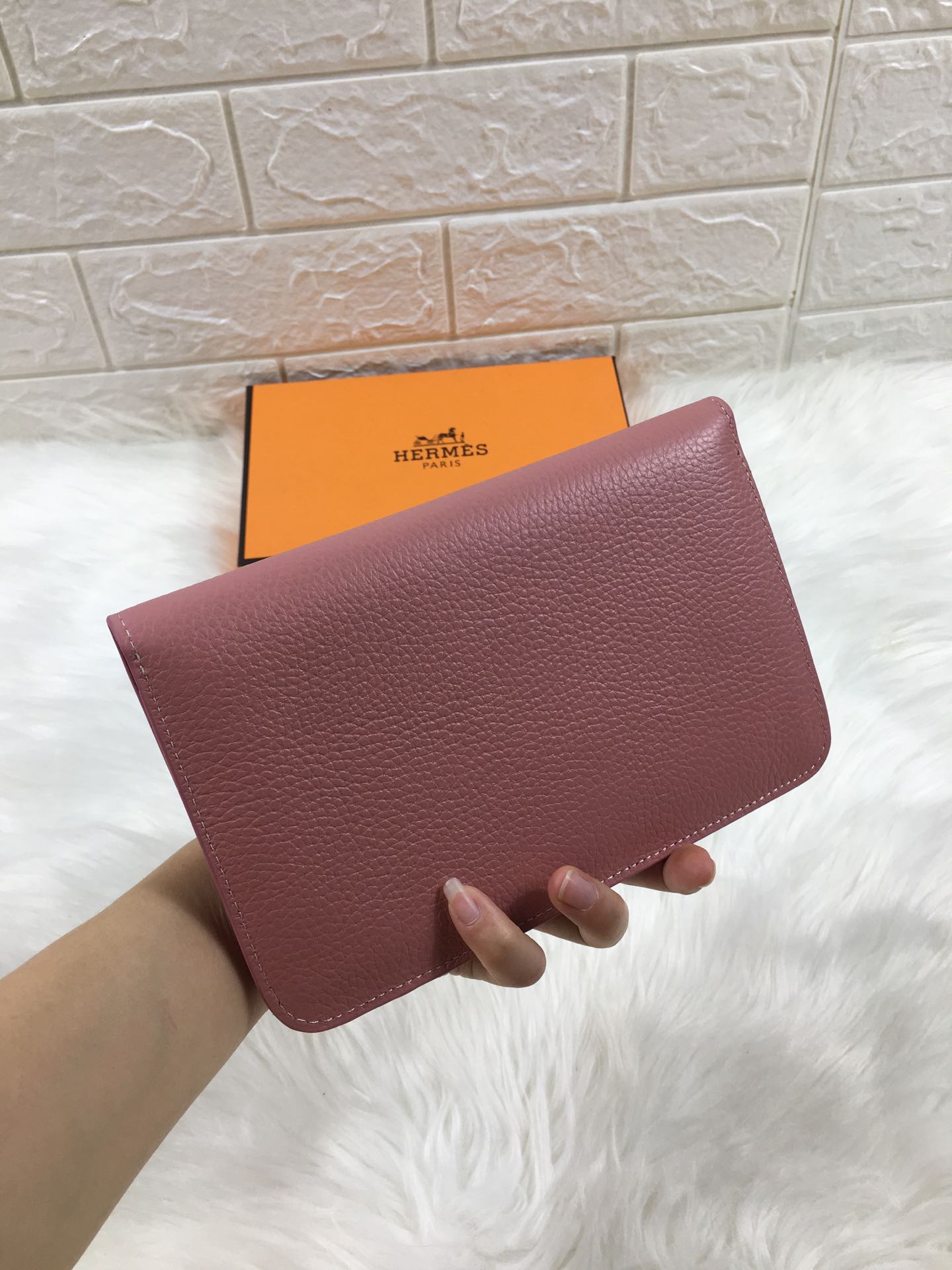 HM DOGON WALLET 20 DUSTY PINK GRAINED CALFSKIN