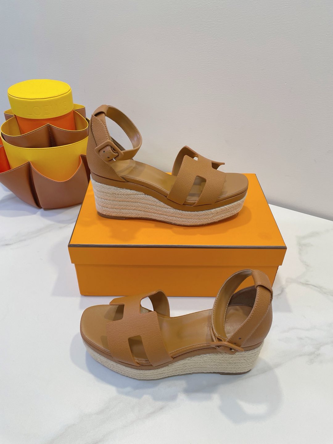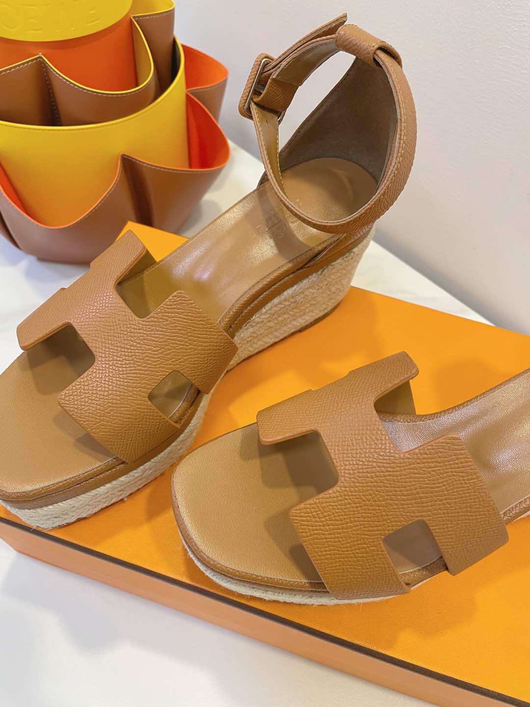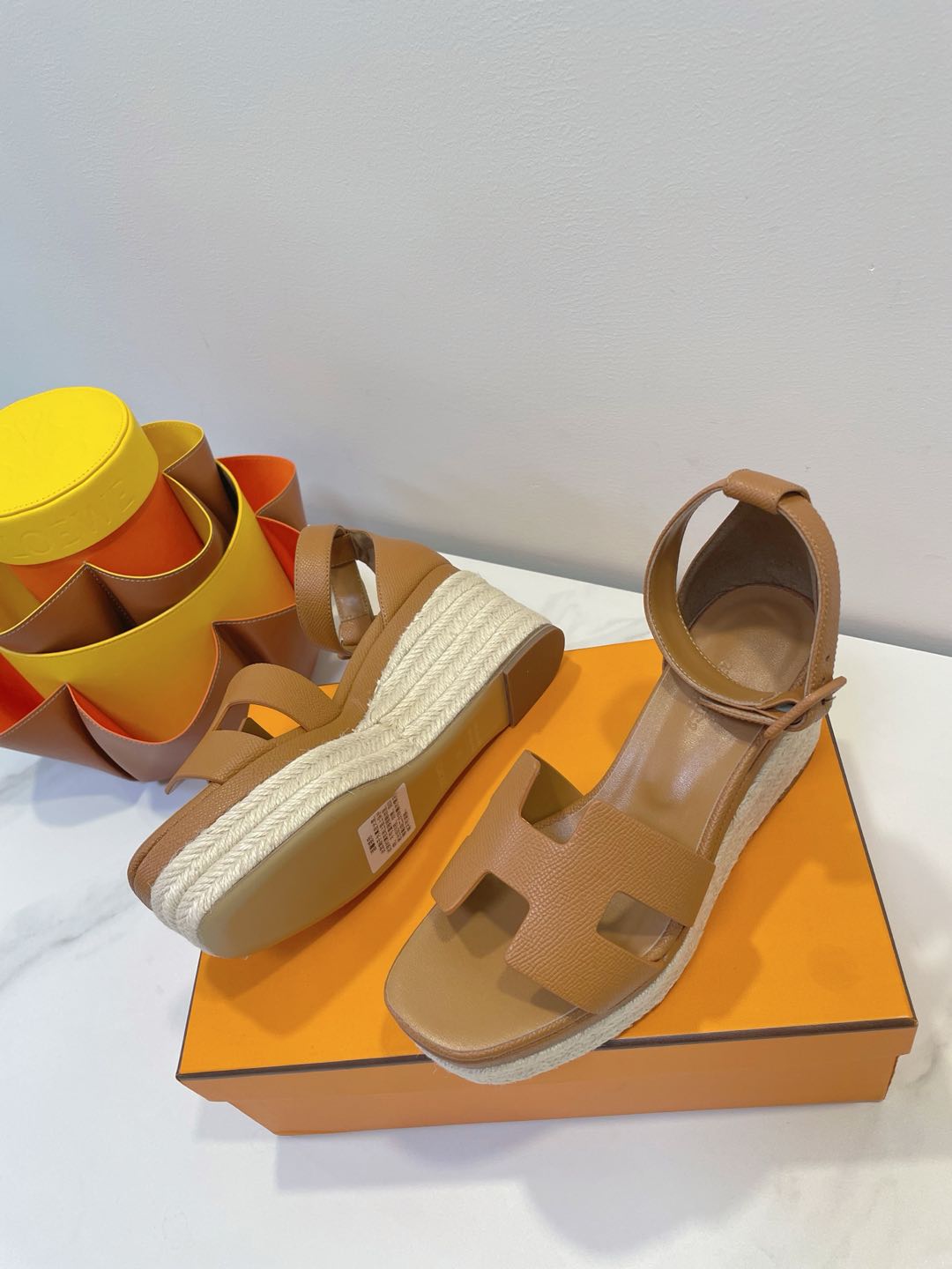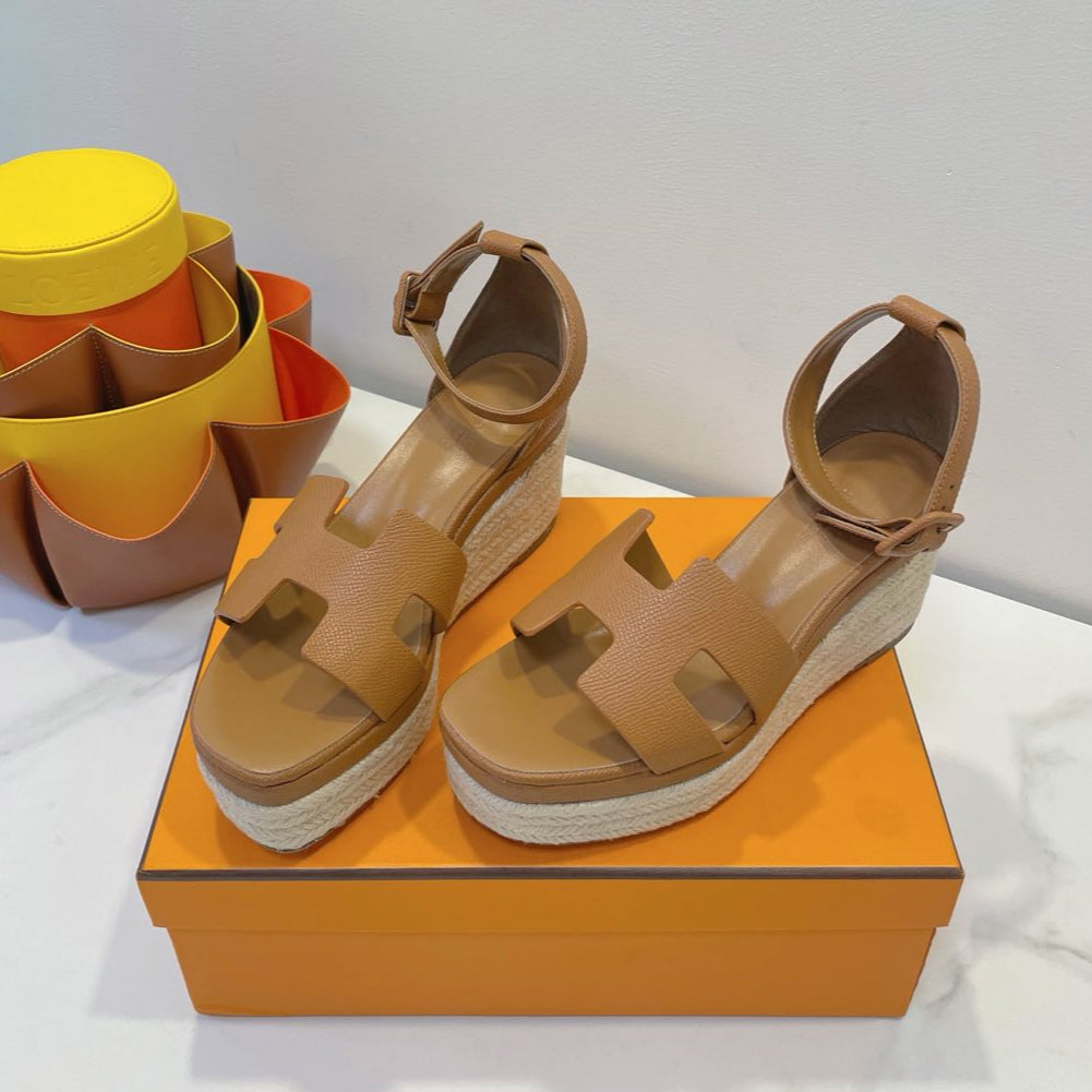 - Material: Cowhide, wedged rope heel