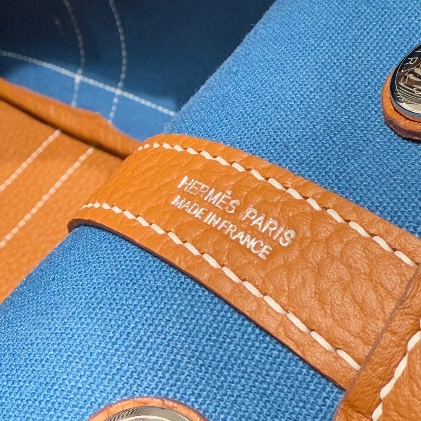 HM Garden Party 30cm Bag Gold Togo Dark Beige Canvas