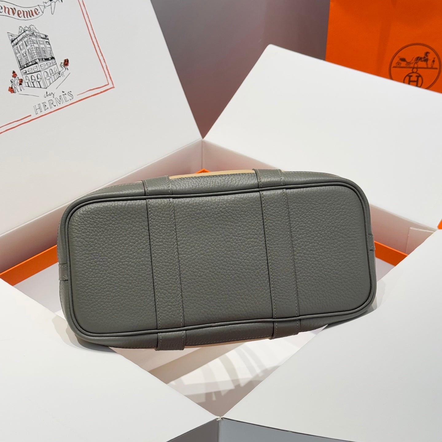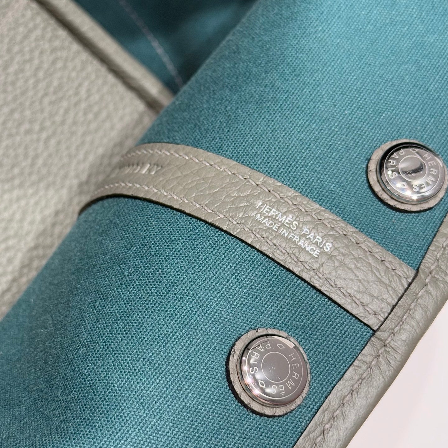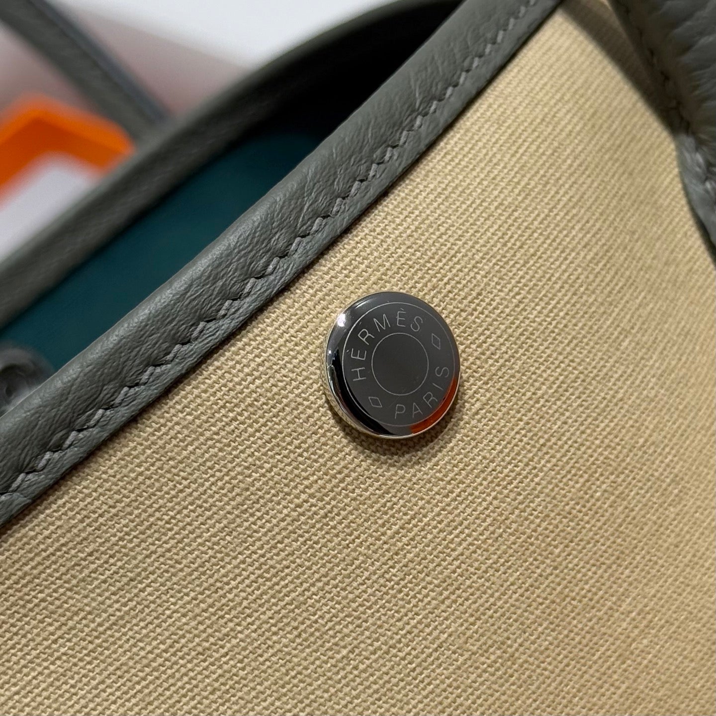 HM Garden Party 30cm Bag Vert Amande Togo Beige Canvas