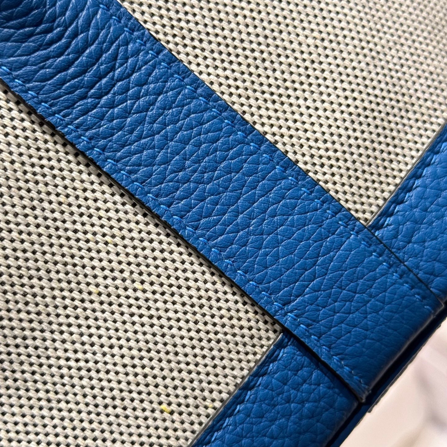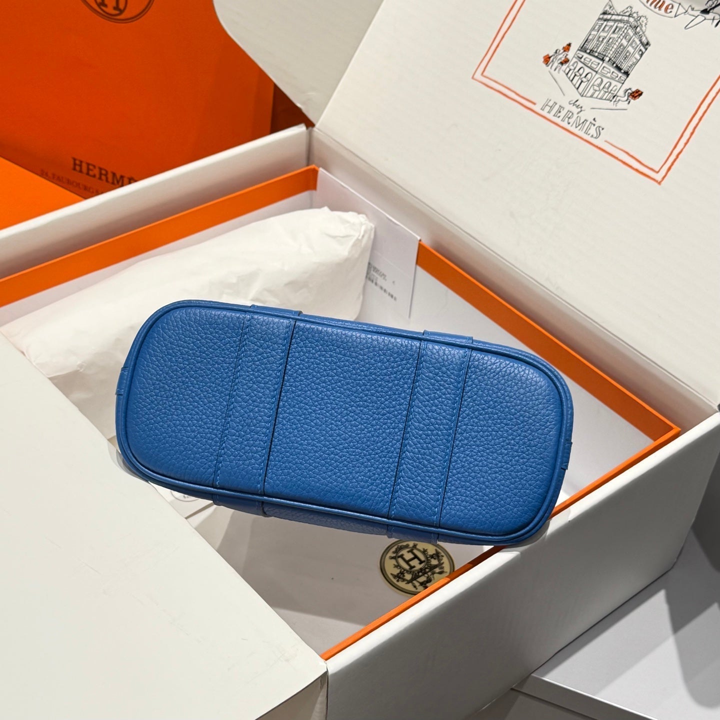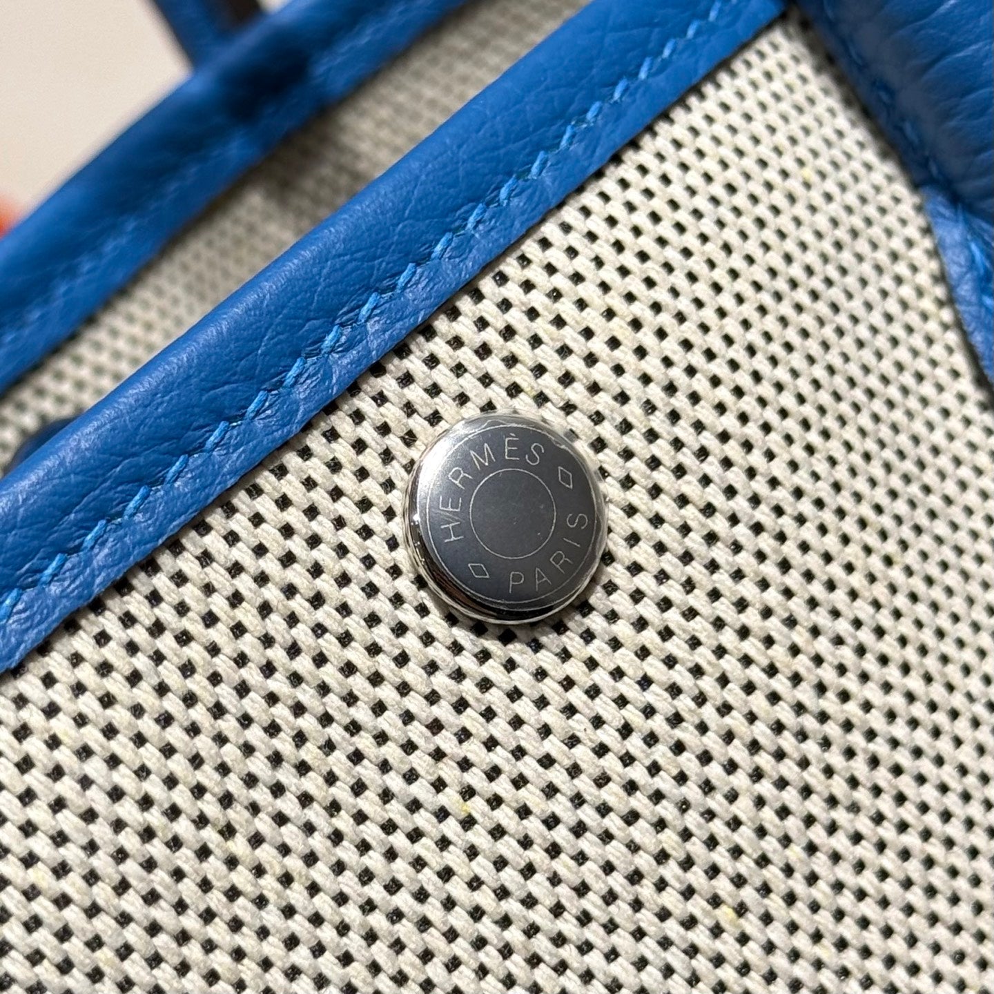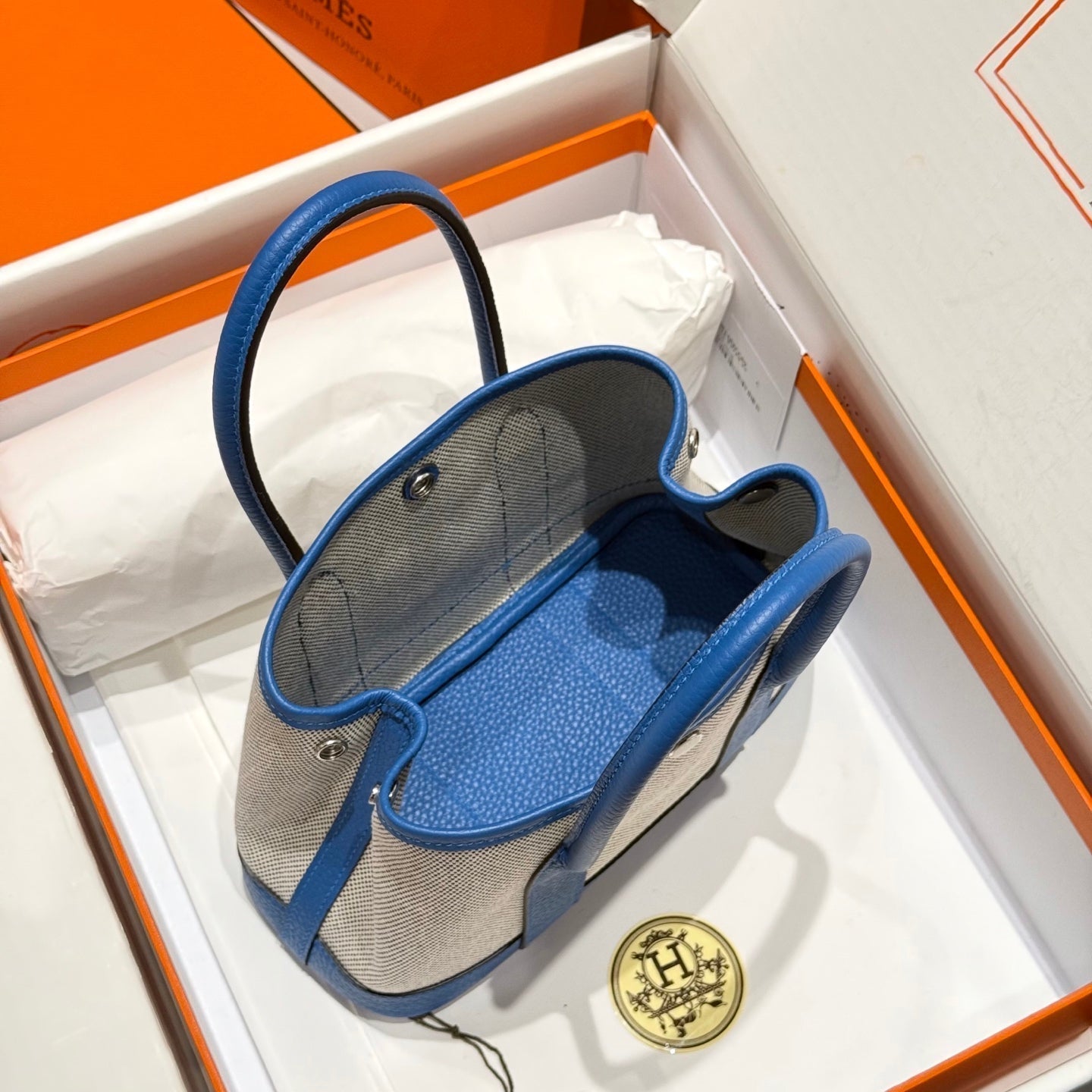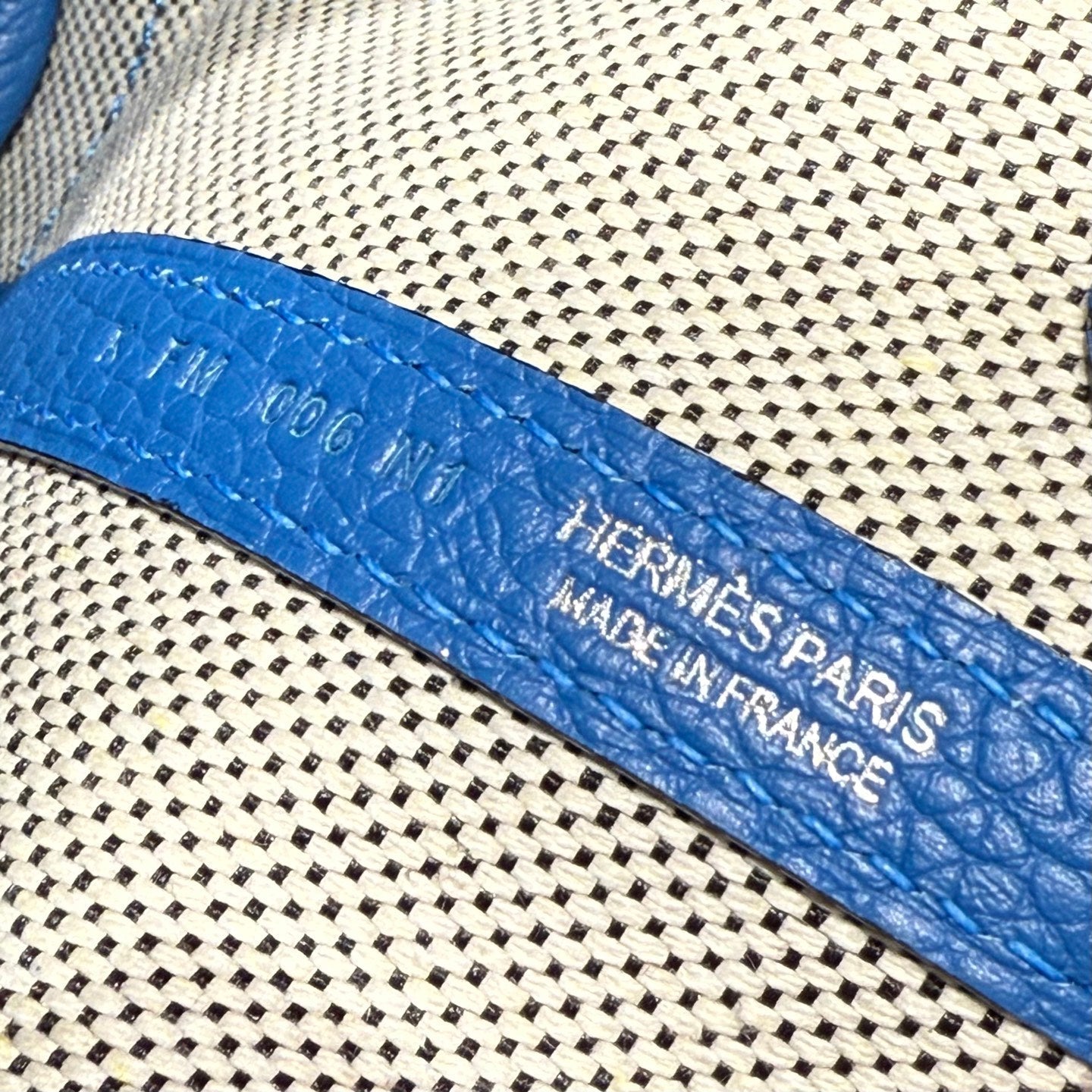 HM Garden Party Mini 23cm Bag Blue Togo Cream Canvas