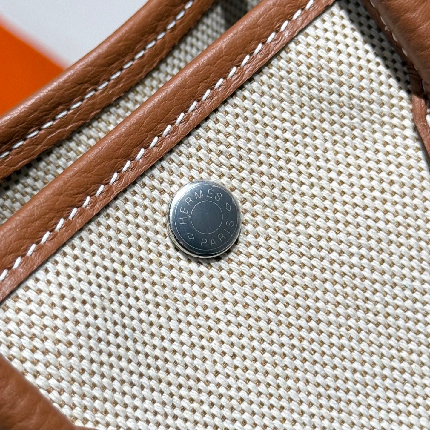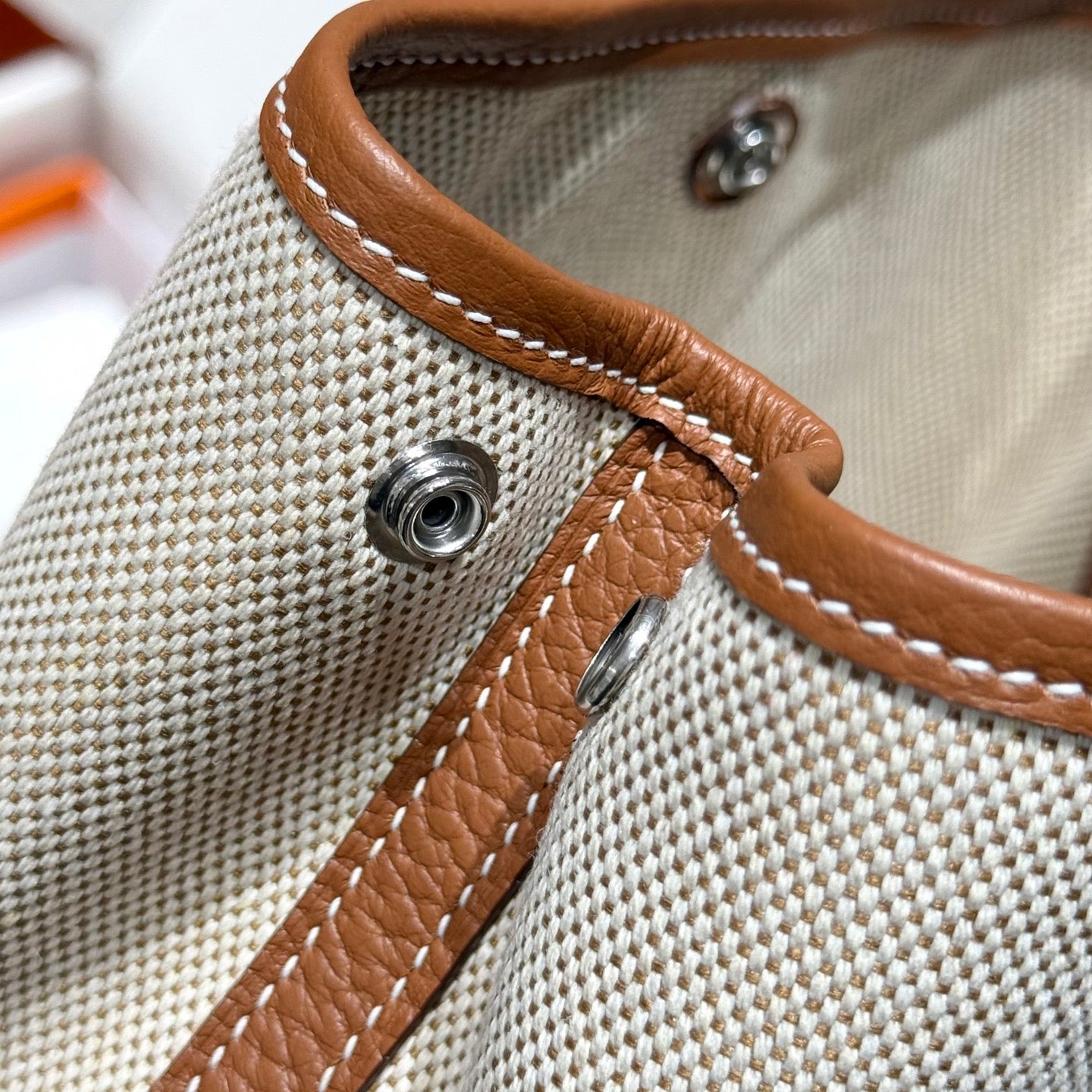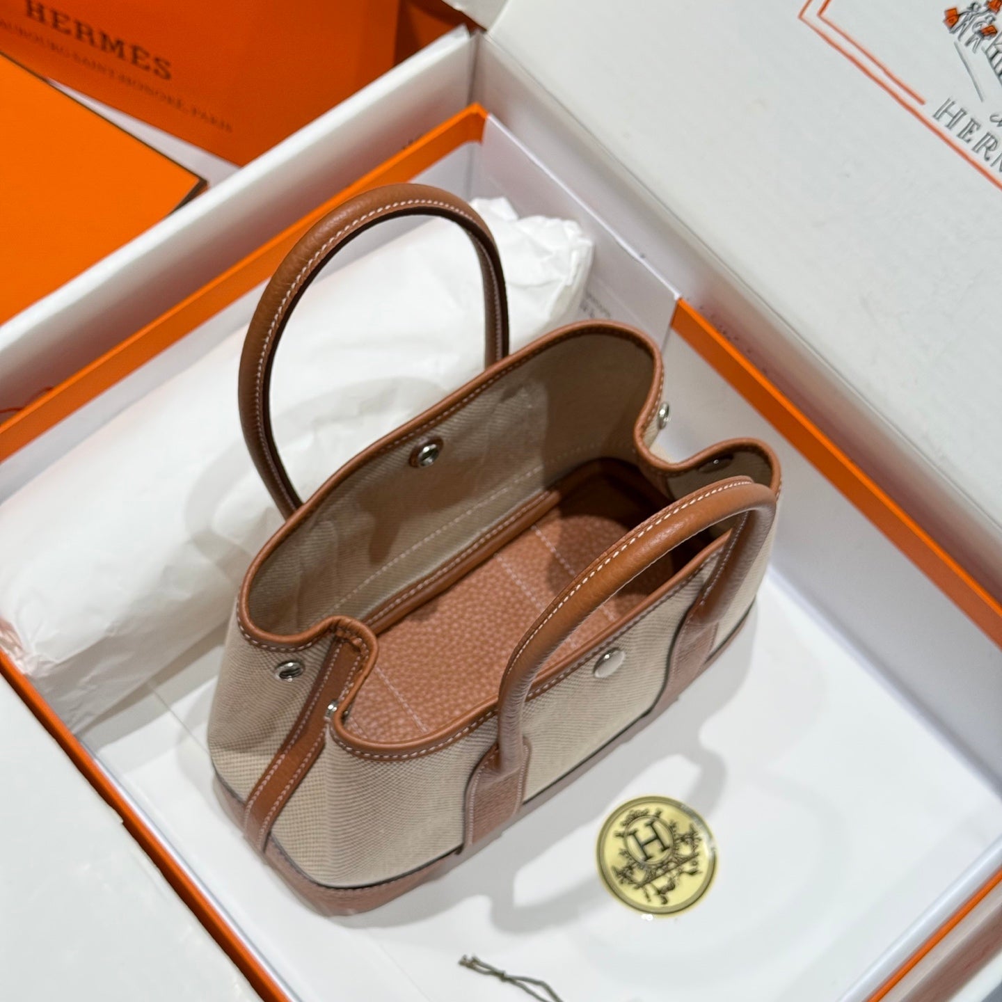 HM Garden Party Mini 23cm Bag Gold Togo Cream Canvas
