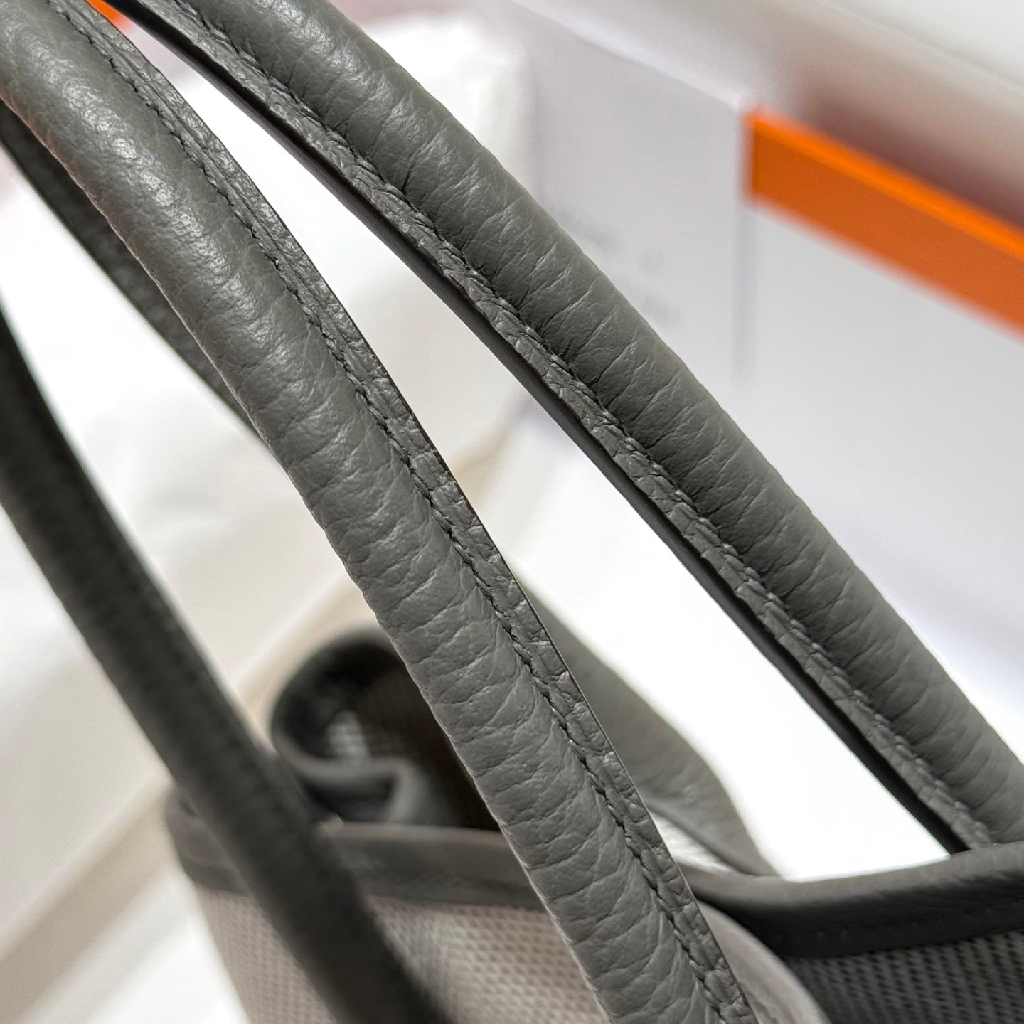 HM Garden Party Mini 23cm Bag Gris Neve Togo Cream Canvas