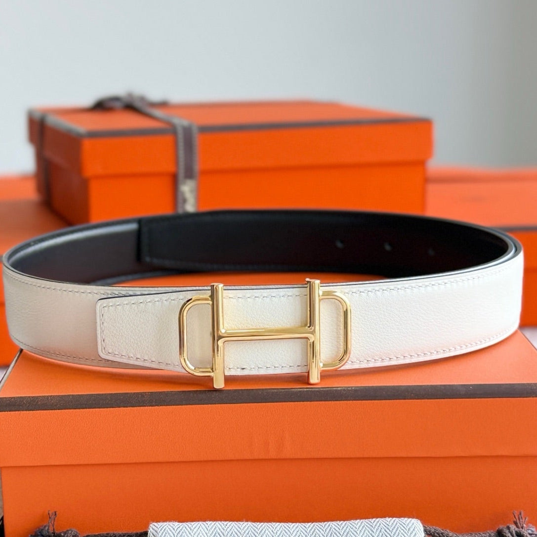 HM Gold Buckle 32mm Royal Belt Ivory Leather 188425