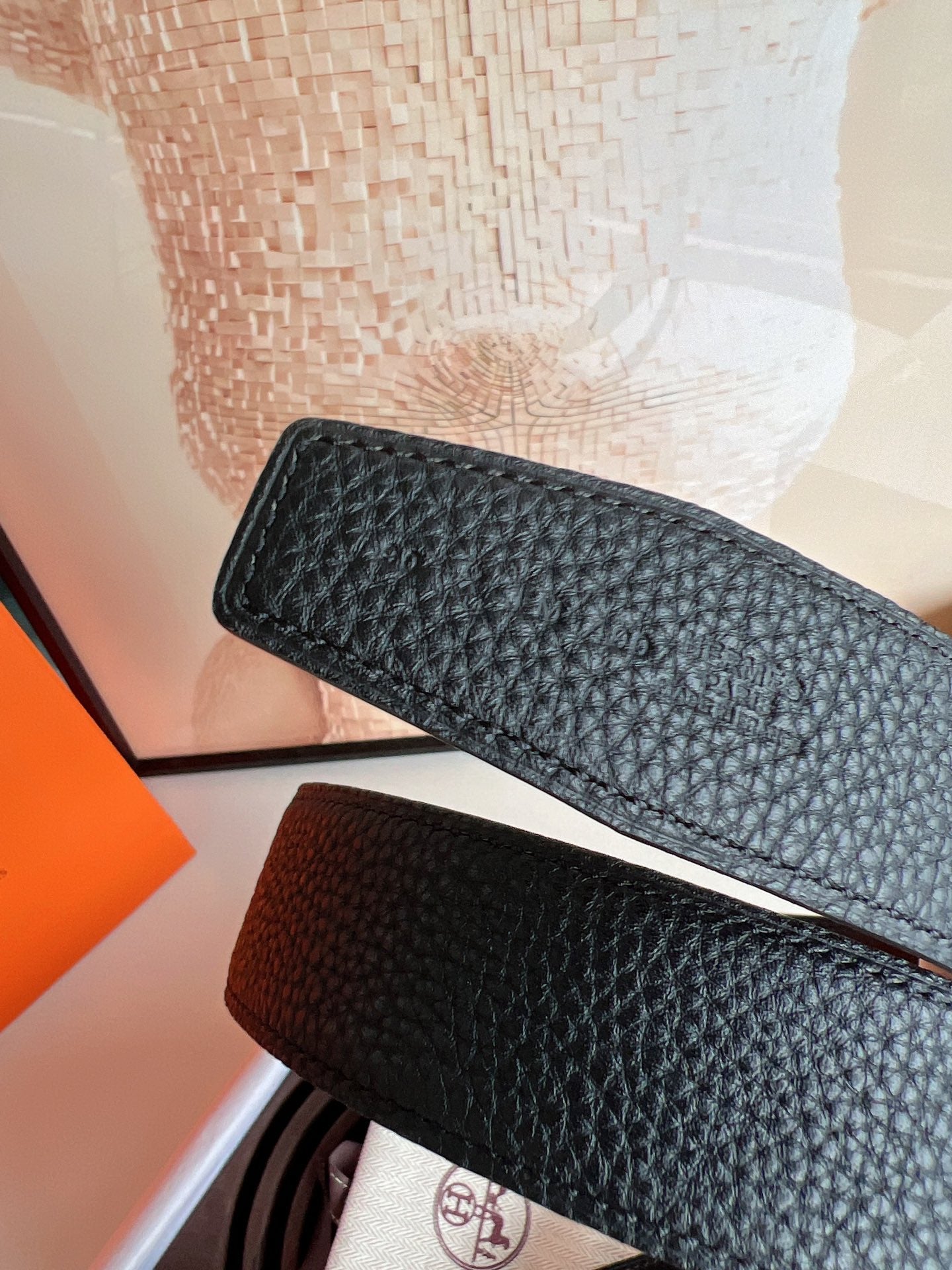 HM BELT BUCKLE & REVERSIBLE BLACK LEATHER STRAP 38 MM SILVER HARDWARE
