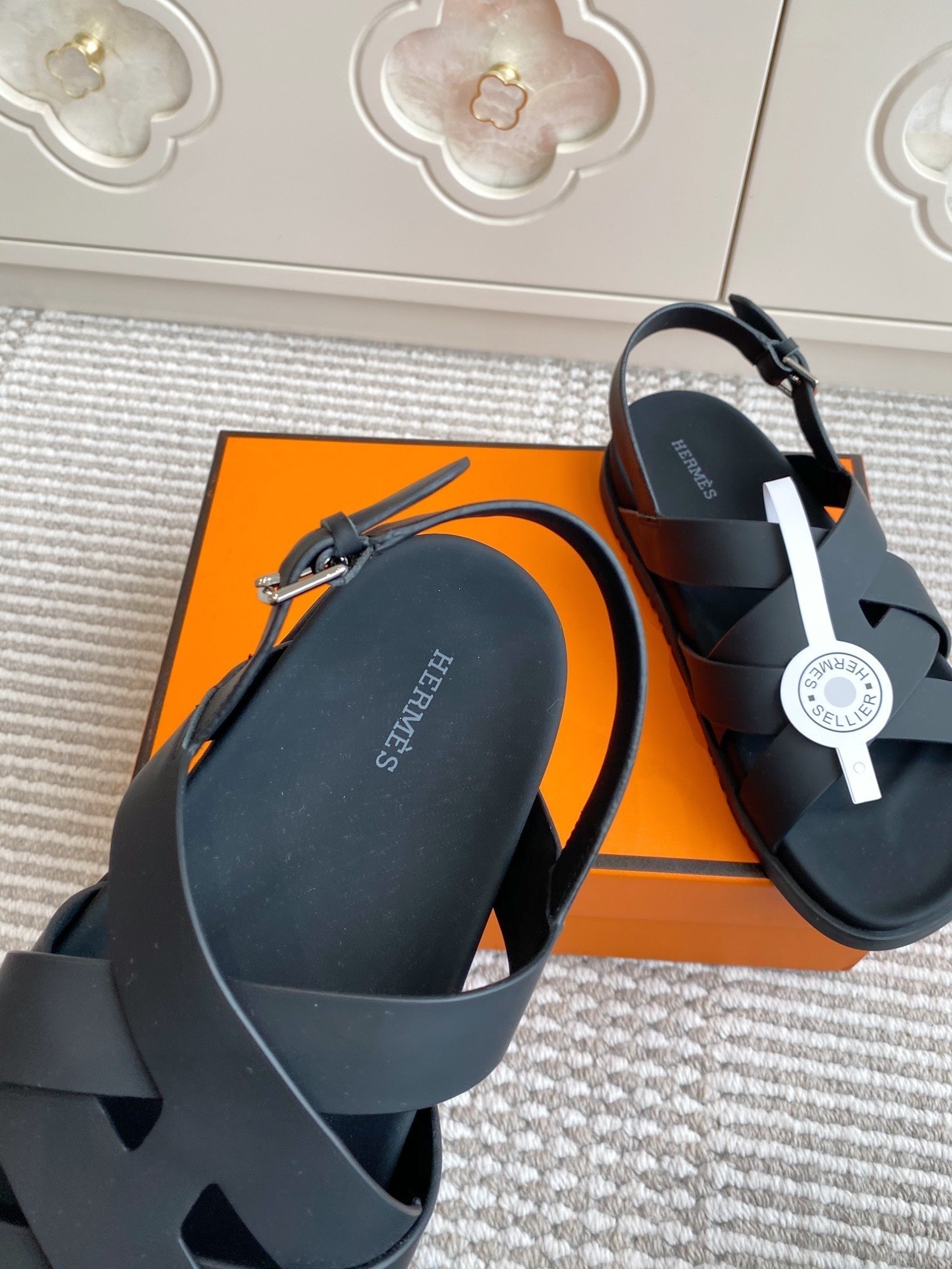 HM Heracles Sandals Black Calfskin 291453