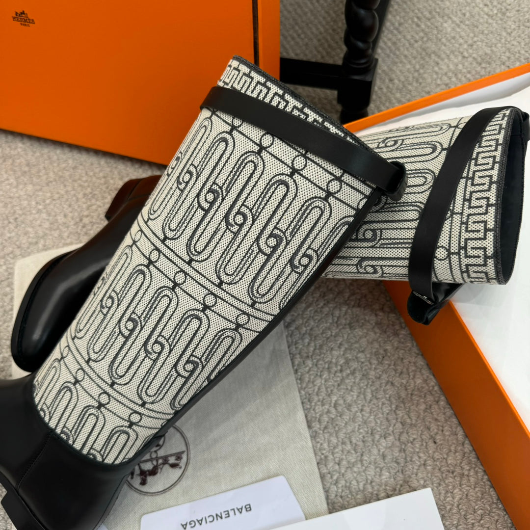 HM Jumping Boot In Black Mix White Calfskin And Burlap 973843