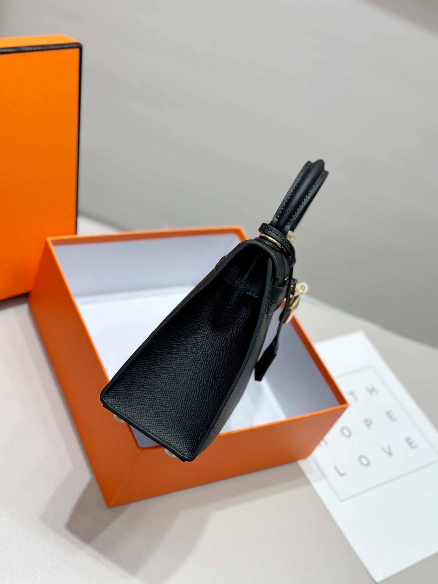 HM Kelly 25cm Black Epsom Leather Gold Hardware