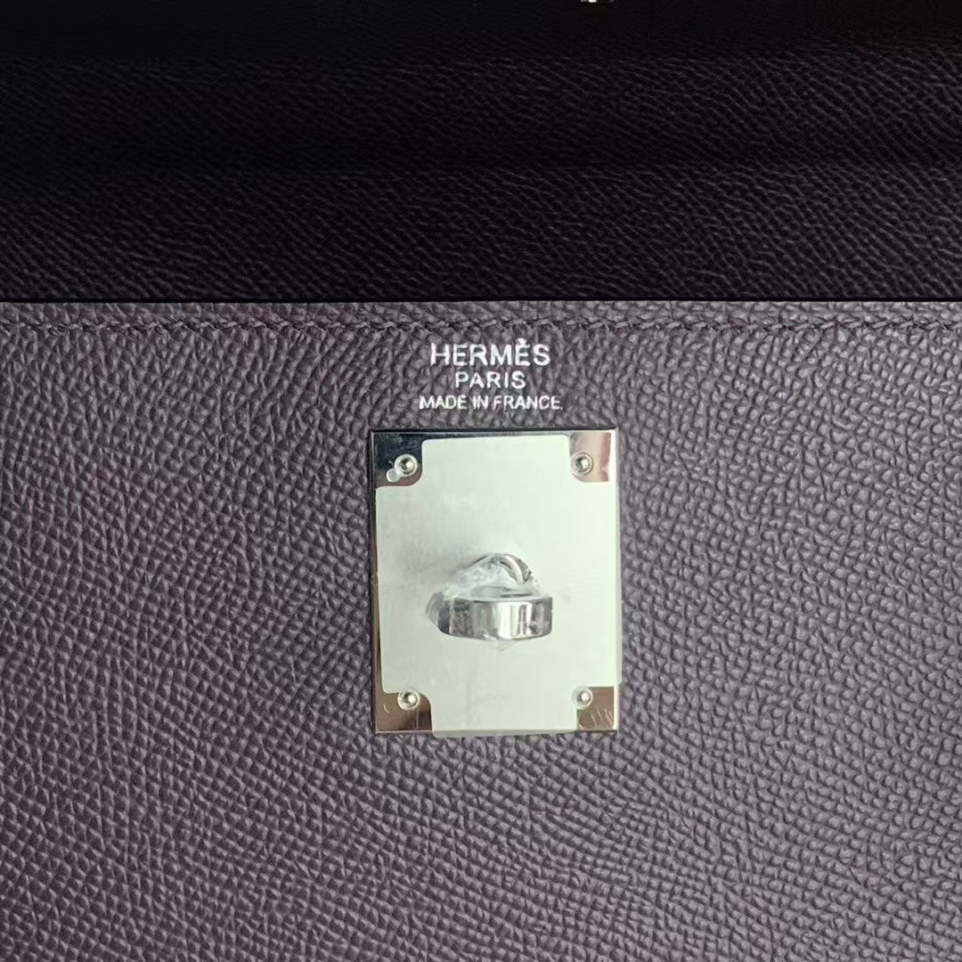 HM KELLY 25CM BURGUNDY EPSOM LEATHER SILVER HARDWARE