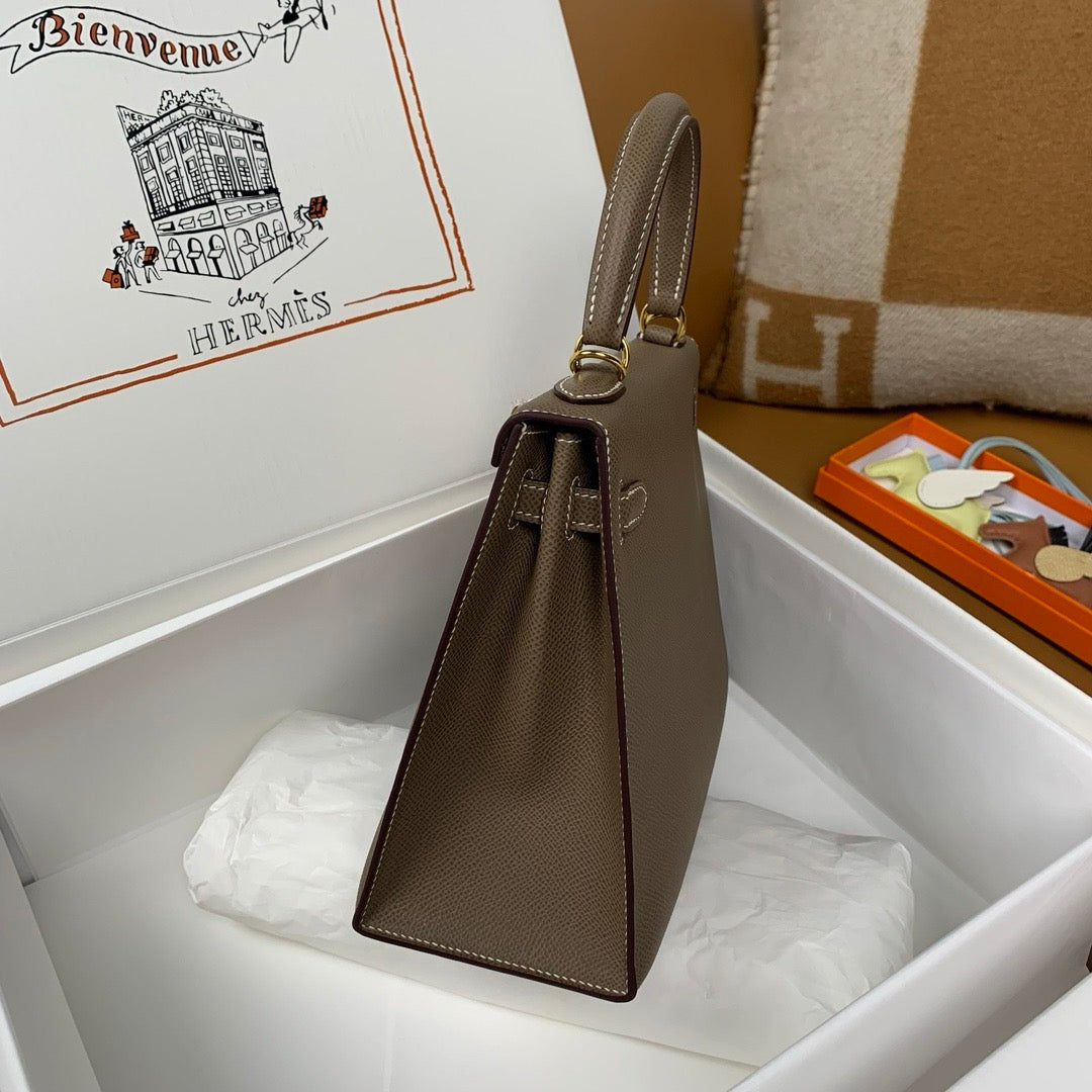 HM KELLY 28CM ETOUPE EPSOM GOLD HARDWARE