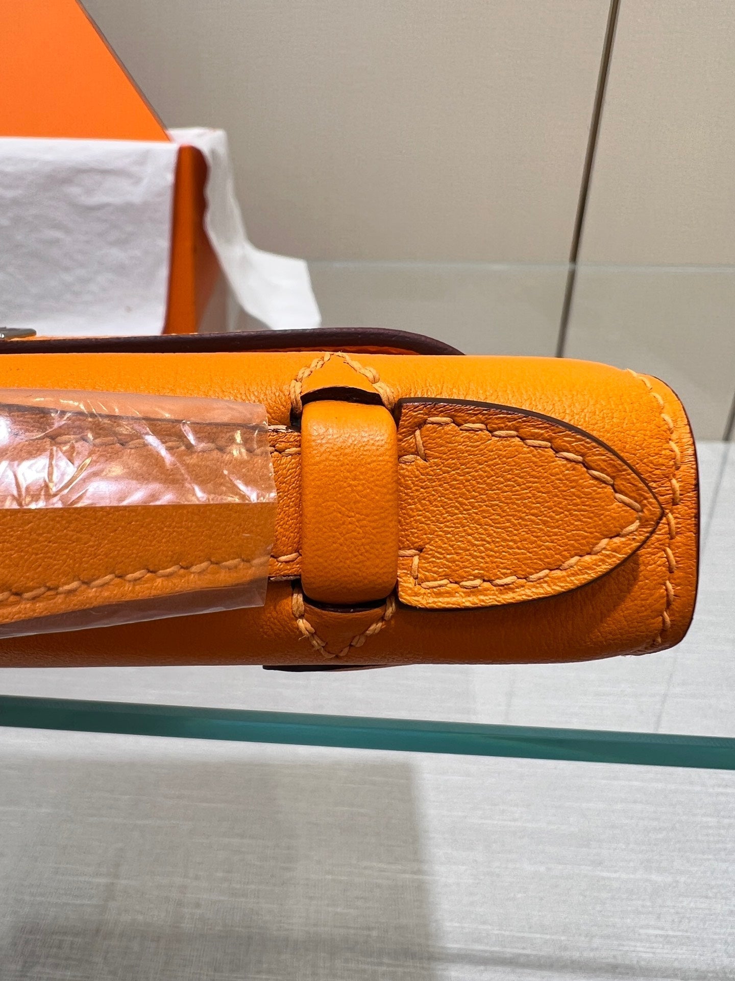 HM KELLY POCHETTE 22CM ORANGE SWIFT SILVER HARDWARE