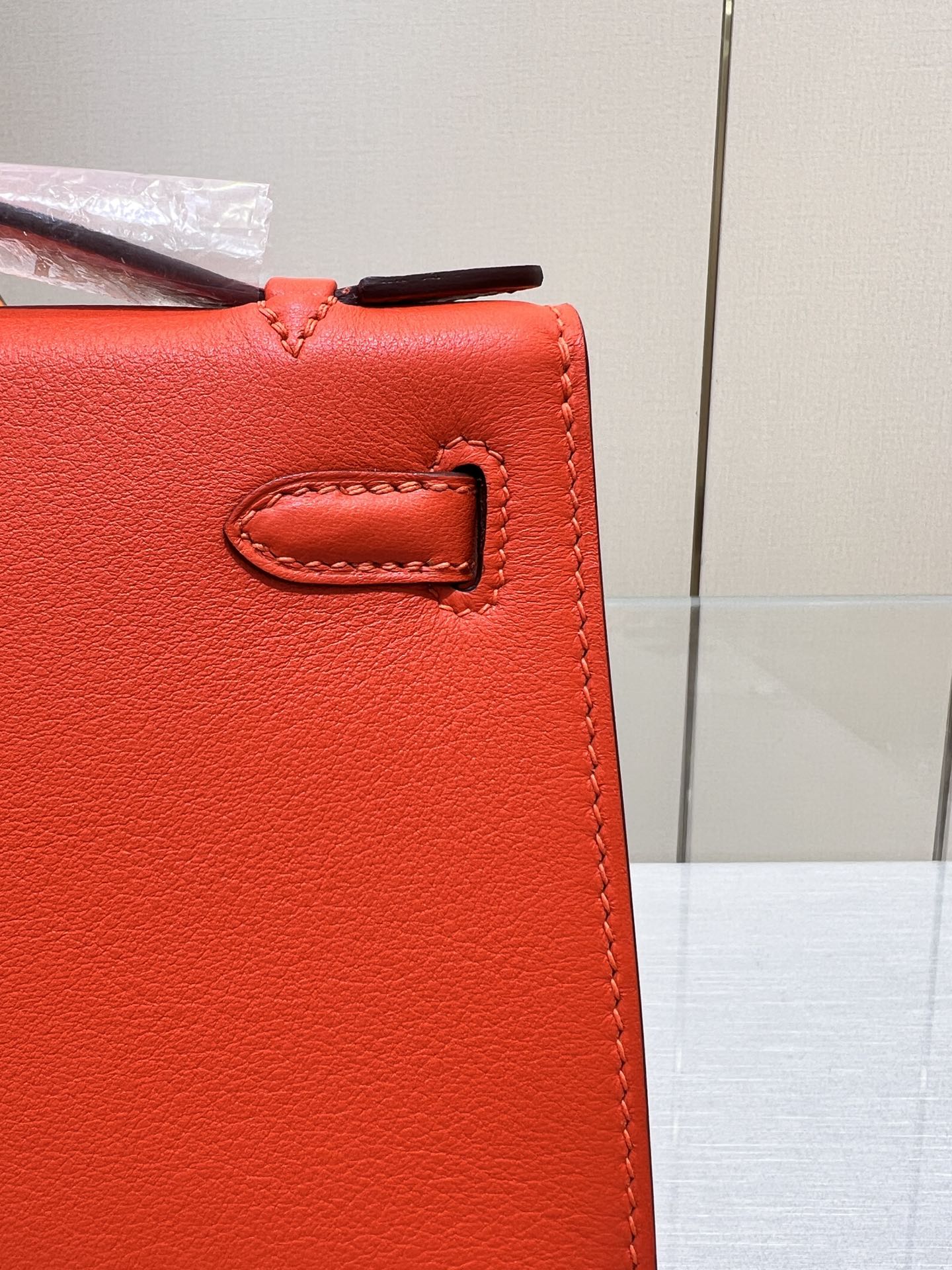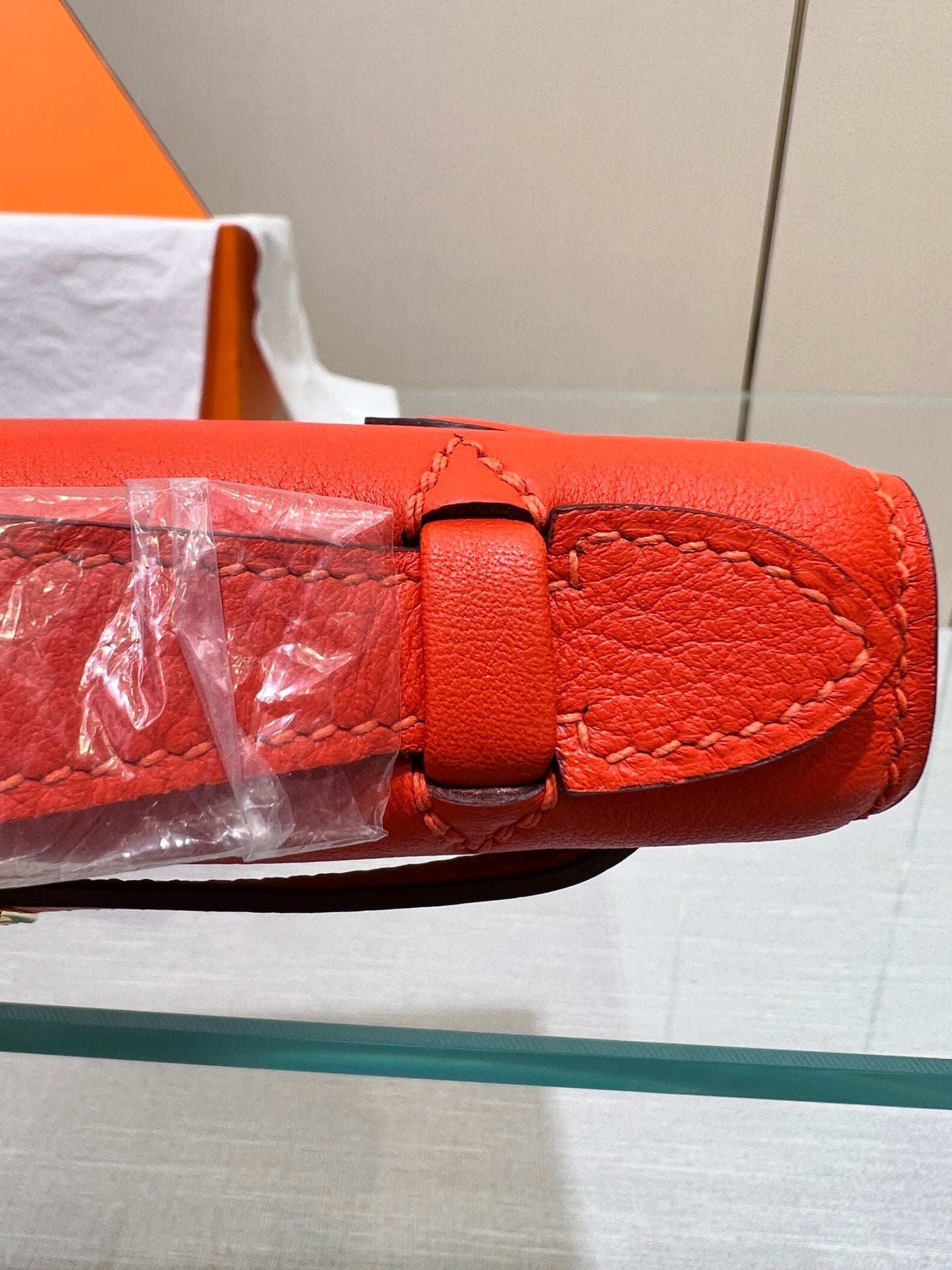 HM KELLY POCHETTE 22CM RED SWIFT GOLD HARDWARE