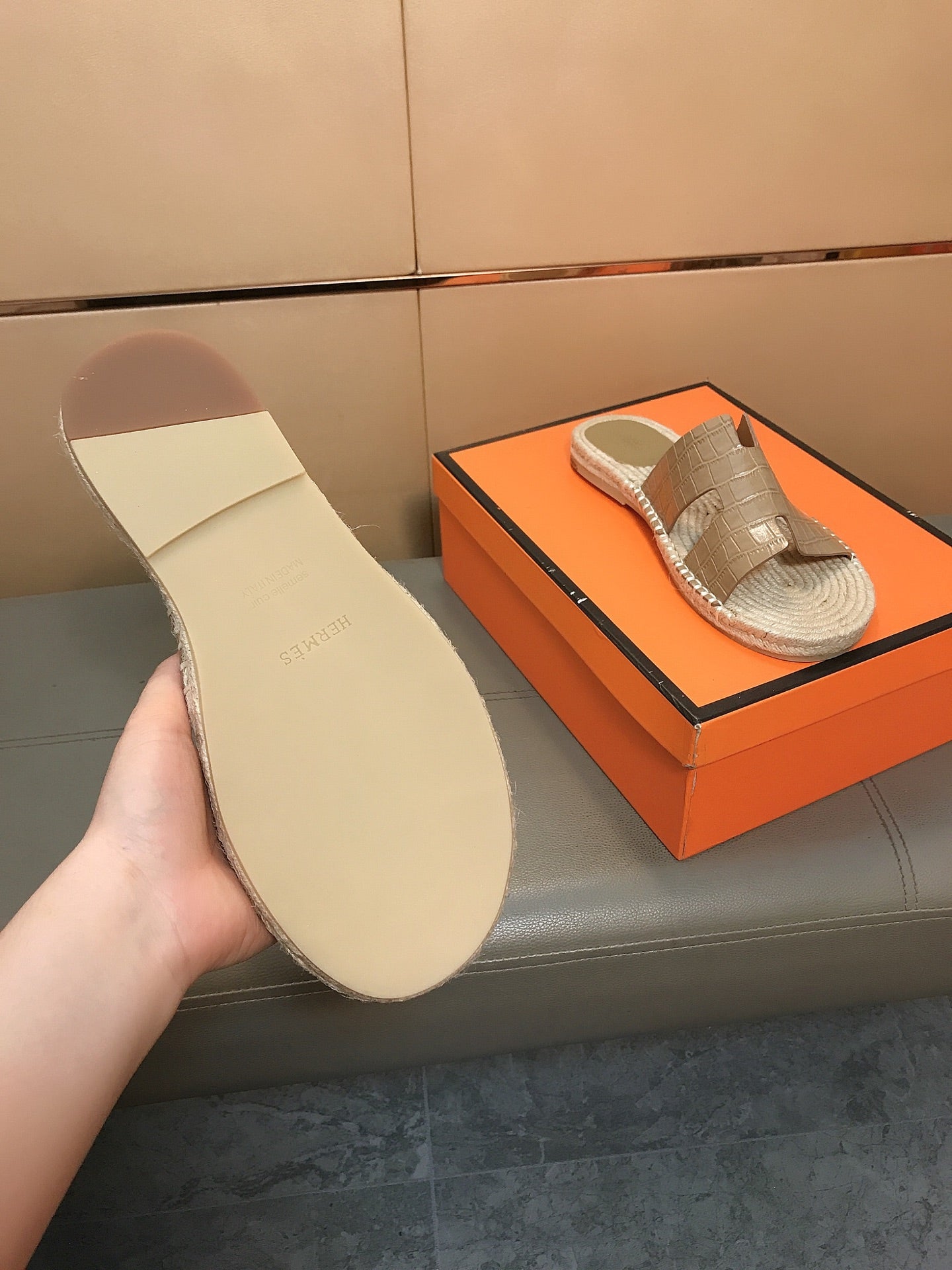 HM Men's Antigua Espadrille Light Brown Embossed Cowhide 704131