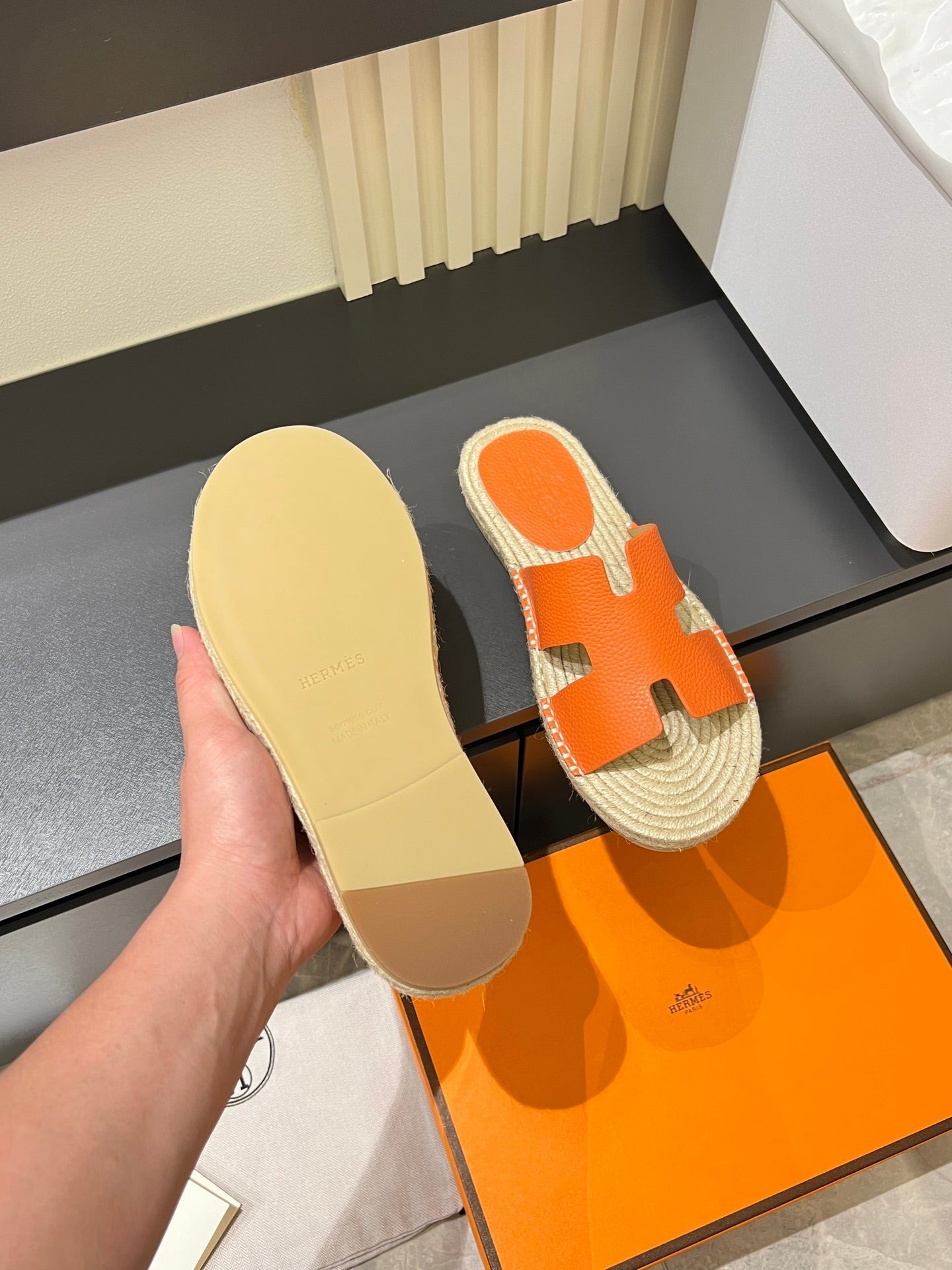HM Men's Antigua Espadrille Slide Orange Lambskin 590821