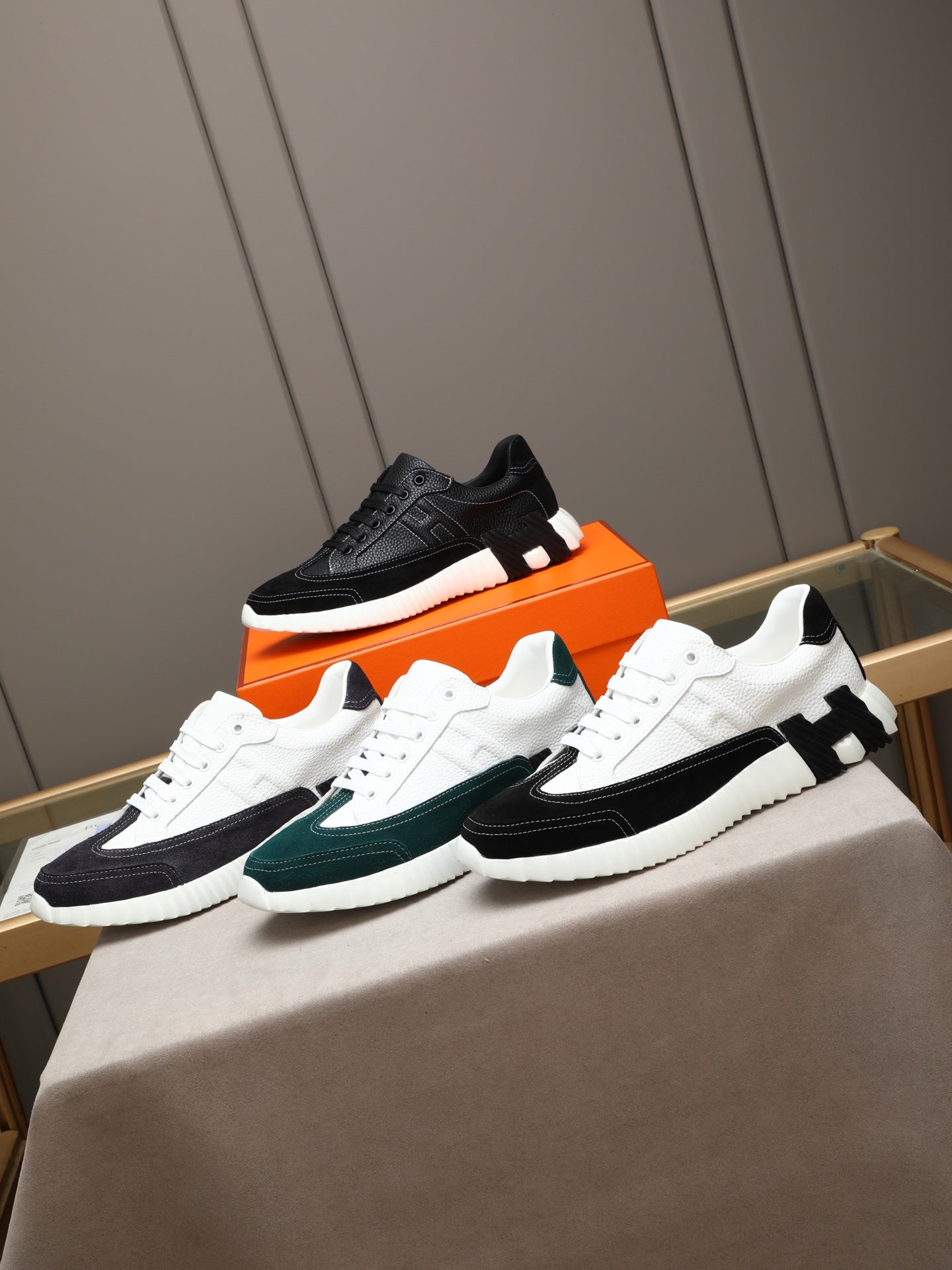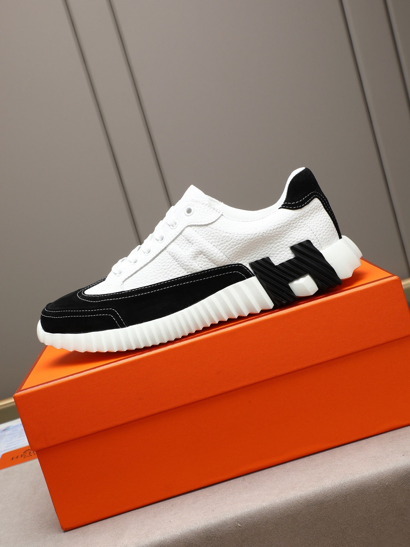 HM Men's Bouncing Sneakers White Black Sheepskin Suede 664381