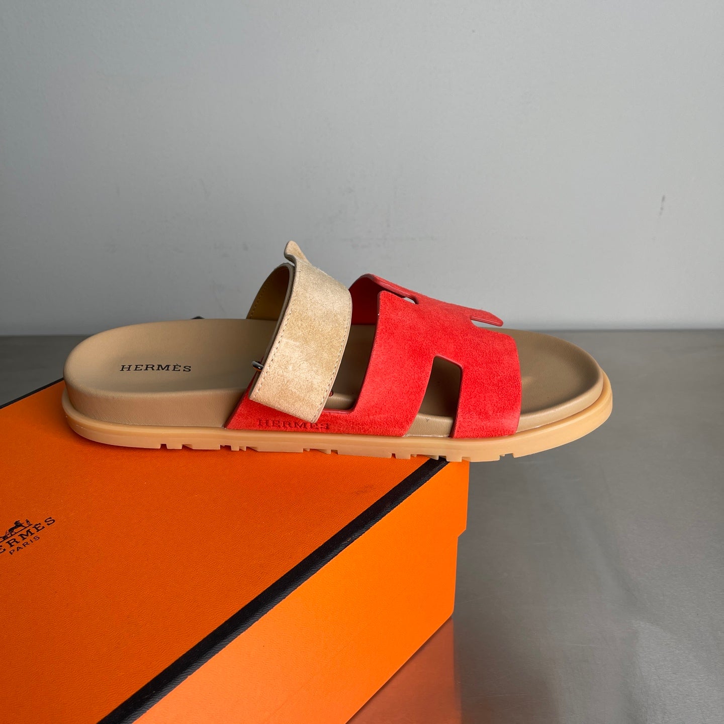 HM Men's Chypre Sandals Red Beige Suede 741433