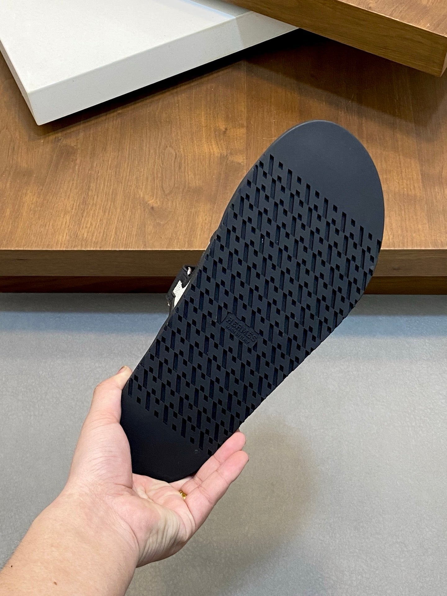 HM Men's Chypre Sandals White Black Cowhide 642697