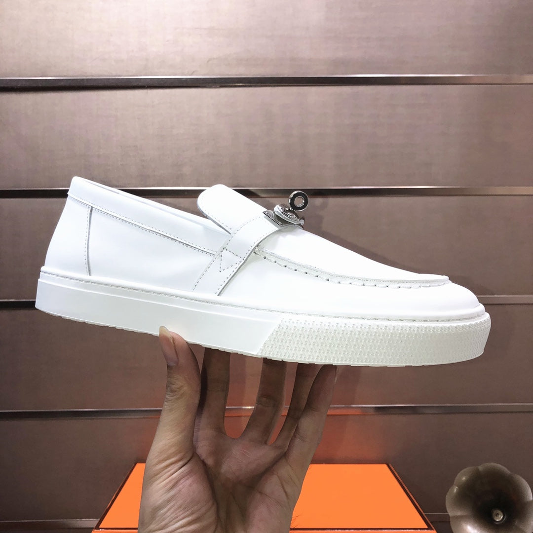 HM Men's Game Slip-on Loafer White Cowhide 473161