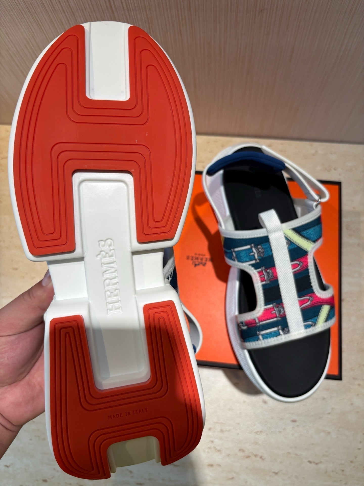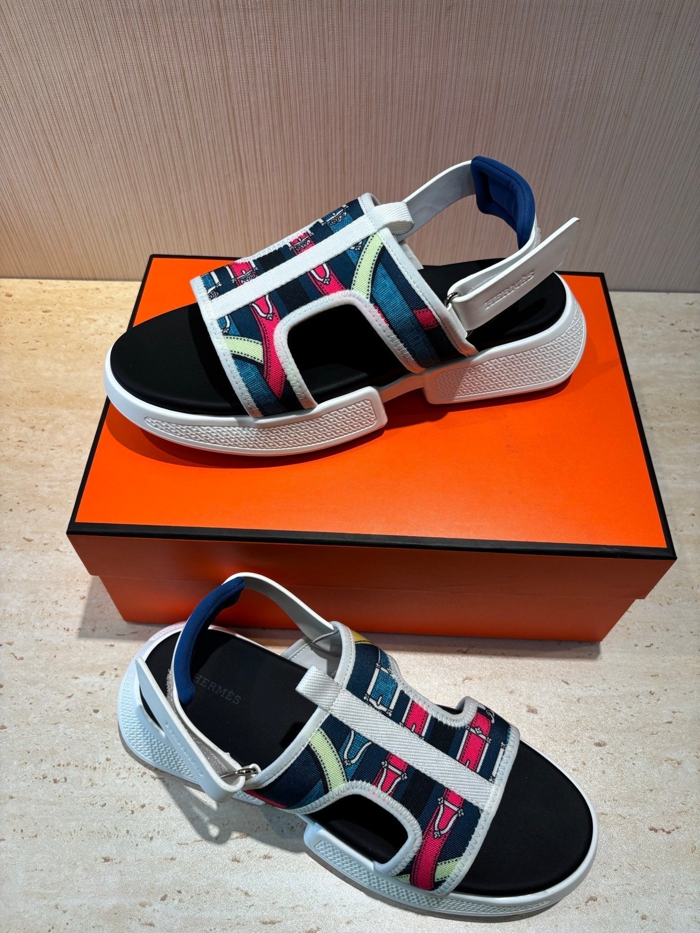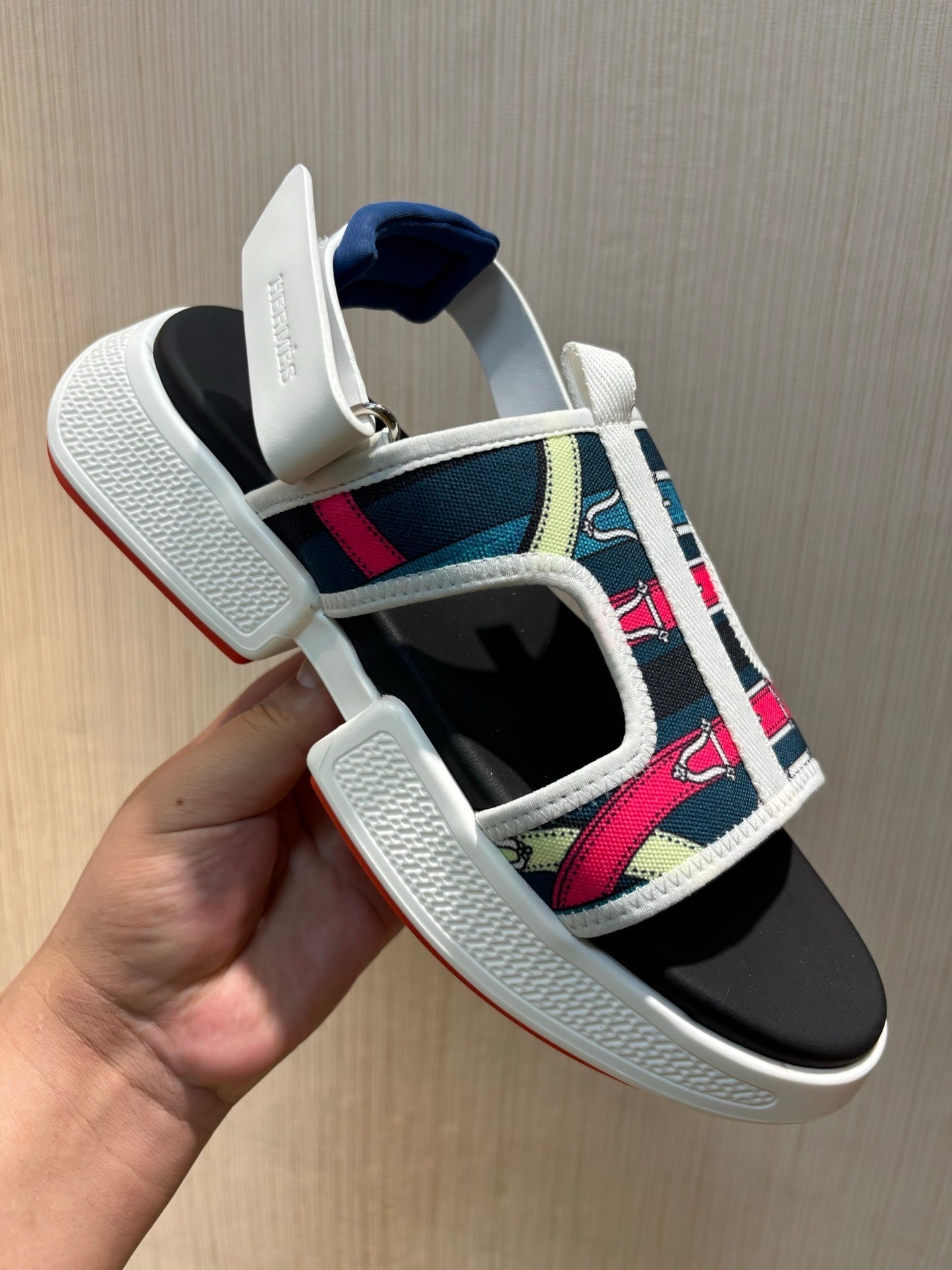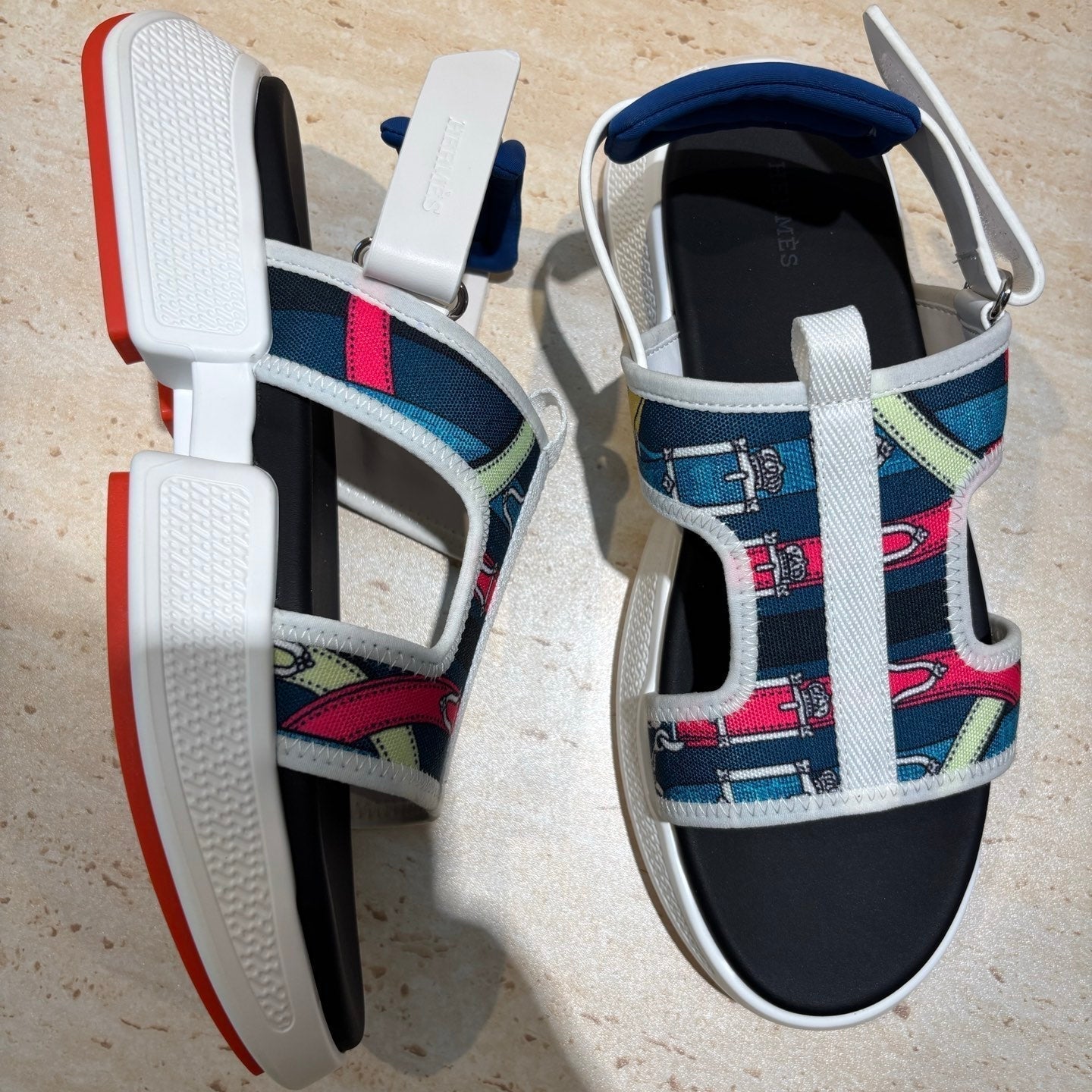 HM Men's Gate Sandal Blue Calfskin Printed Fabric 655431