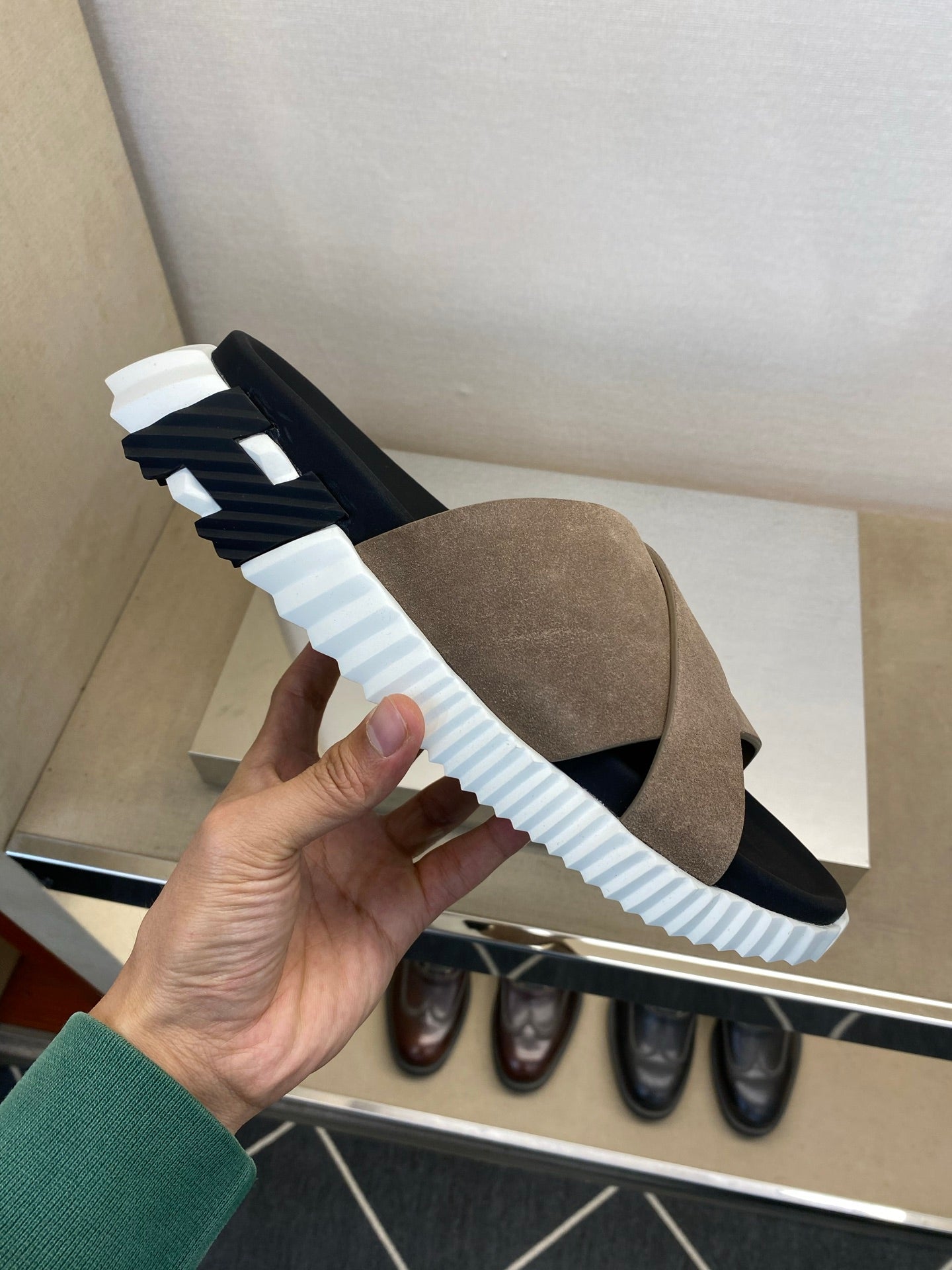 HM Men's Infra Slide Beige Calfskin 602610