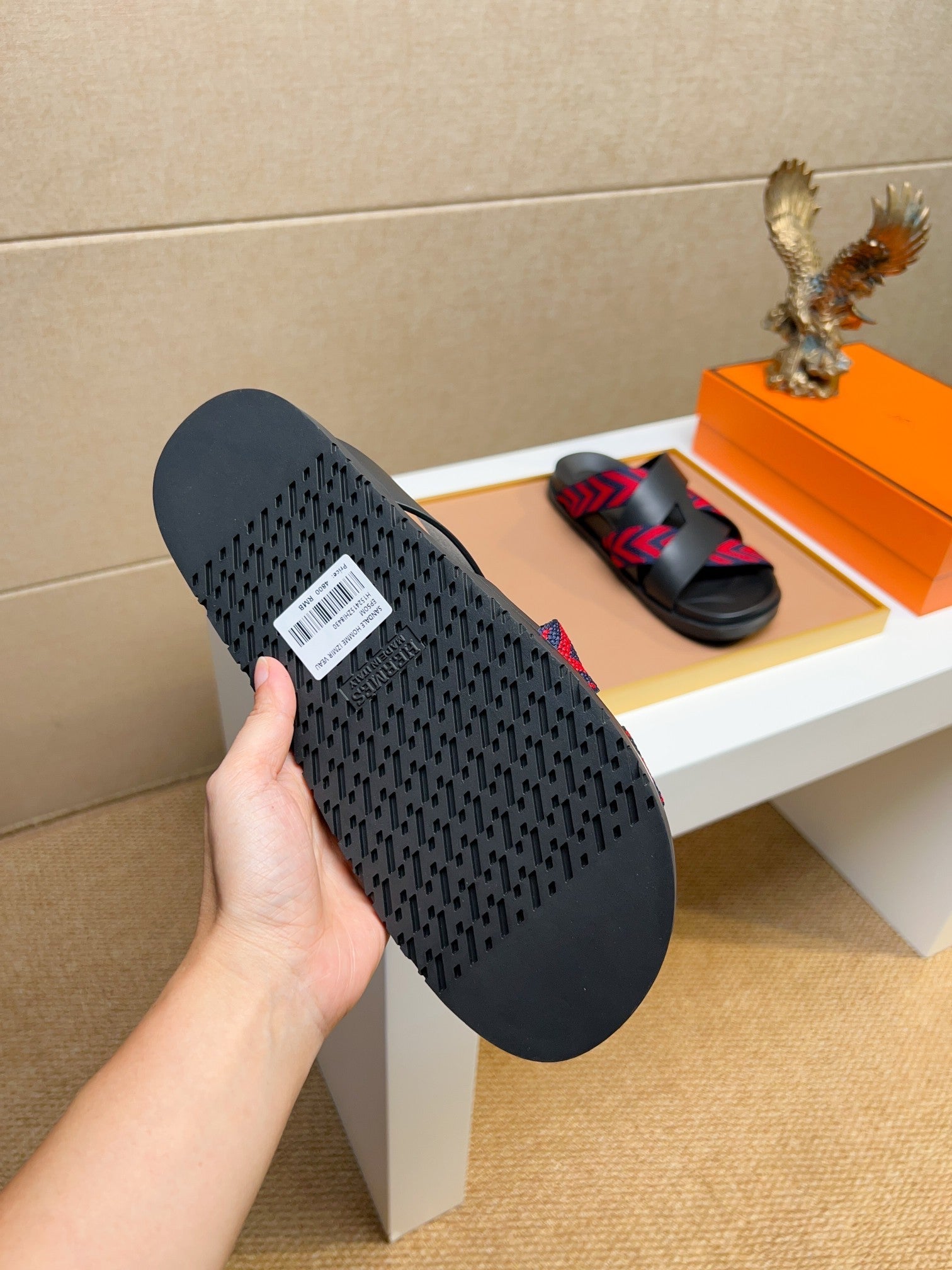 HM Men's Kazimir Sandals Black Red Calfskin 735741