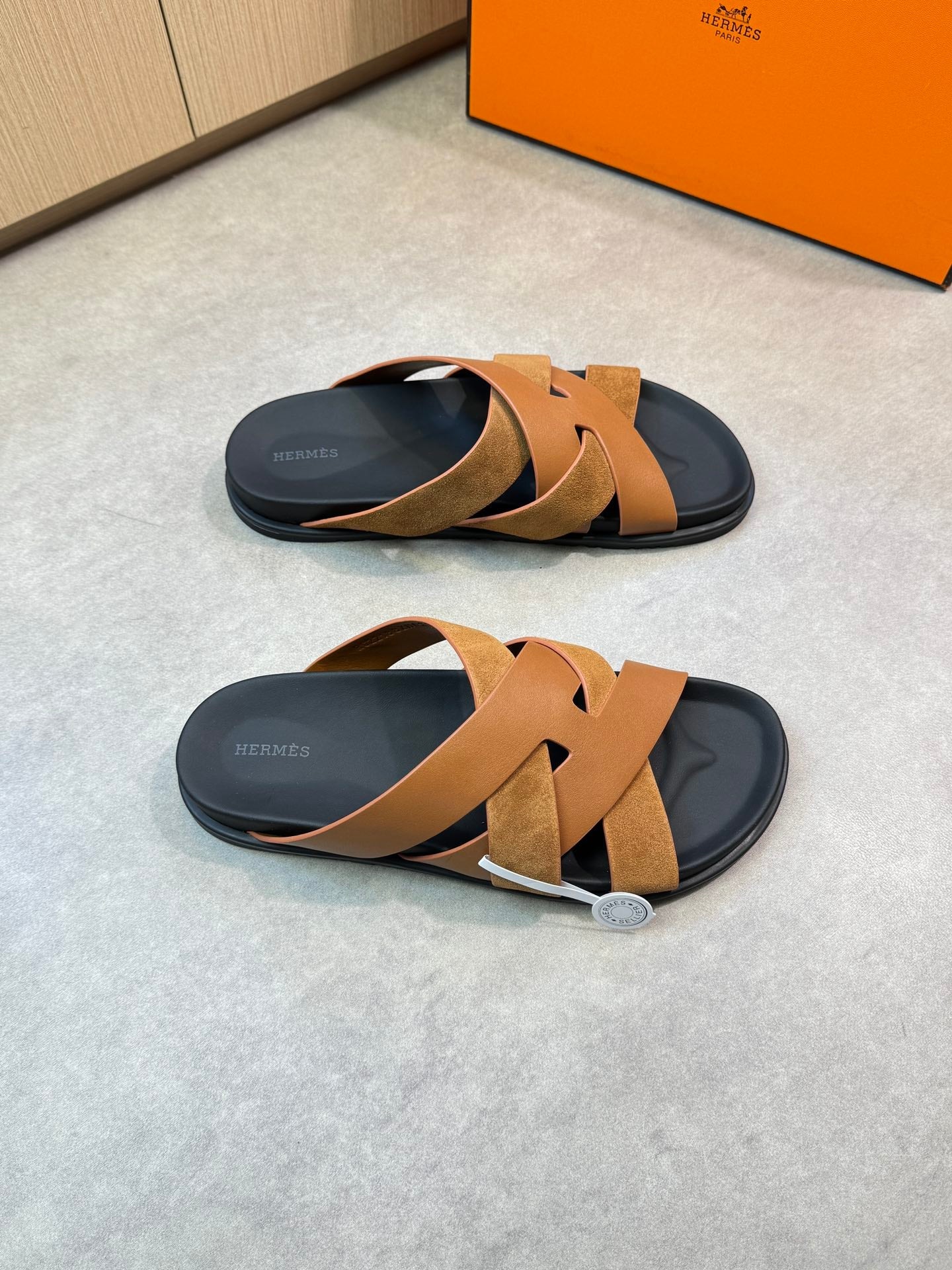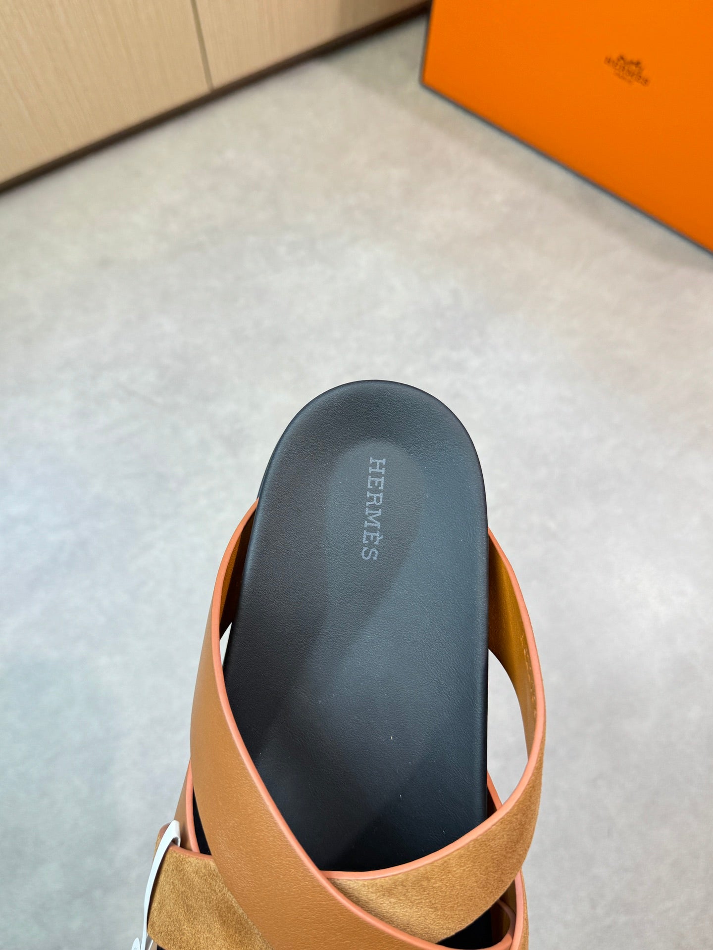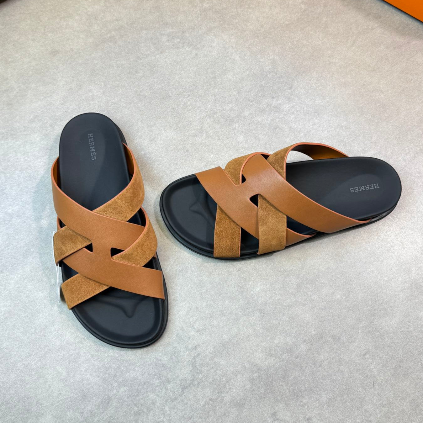 HM Men's Kazimir Slide Brown Calfskin Suede 603170