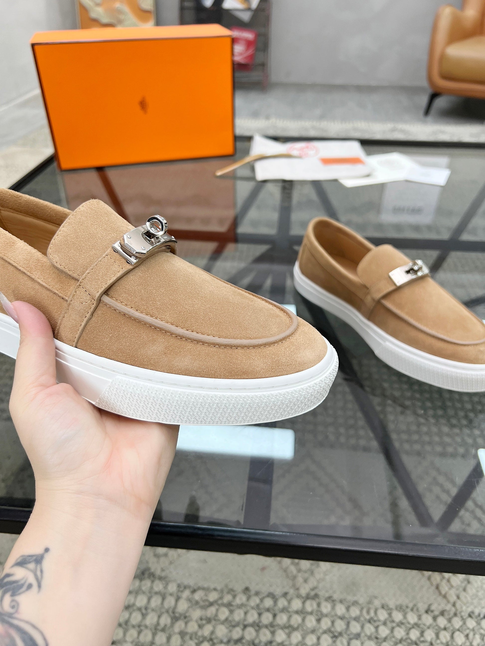 HM Men's Loafers Beige Suede 621424