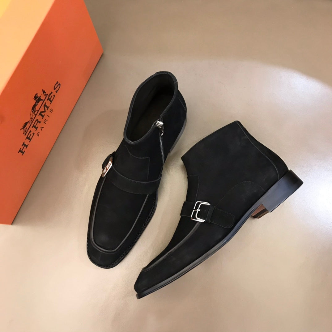 HM Men's Monk Boot Black Suede 527896