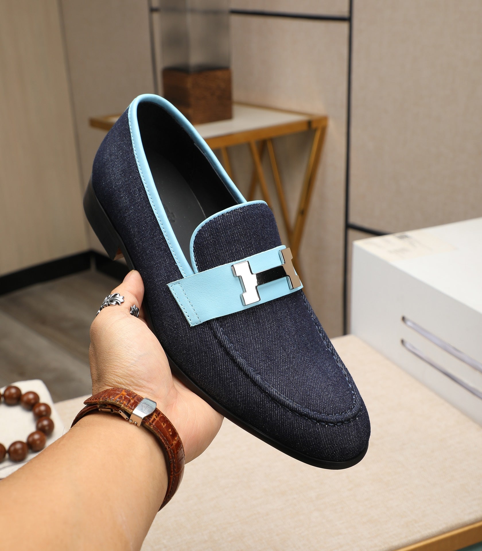 HM Men's Paris Loafer Denim Cowhide 480422