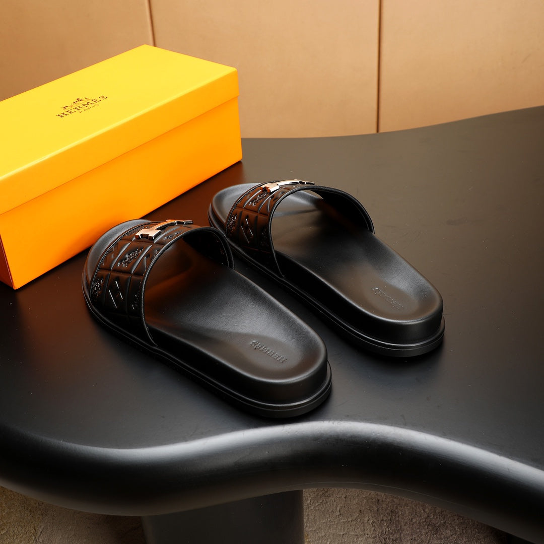 HM Men's Slide Black Cowhide 547361