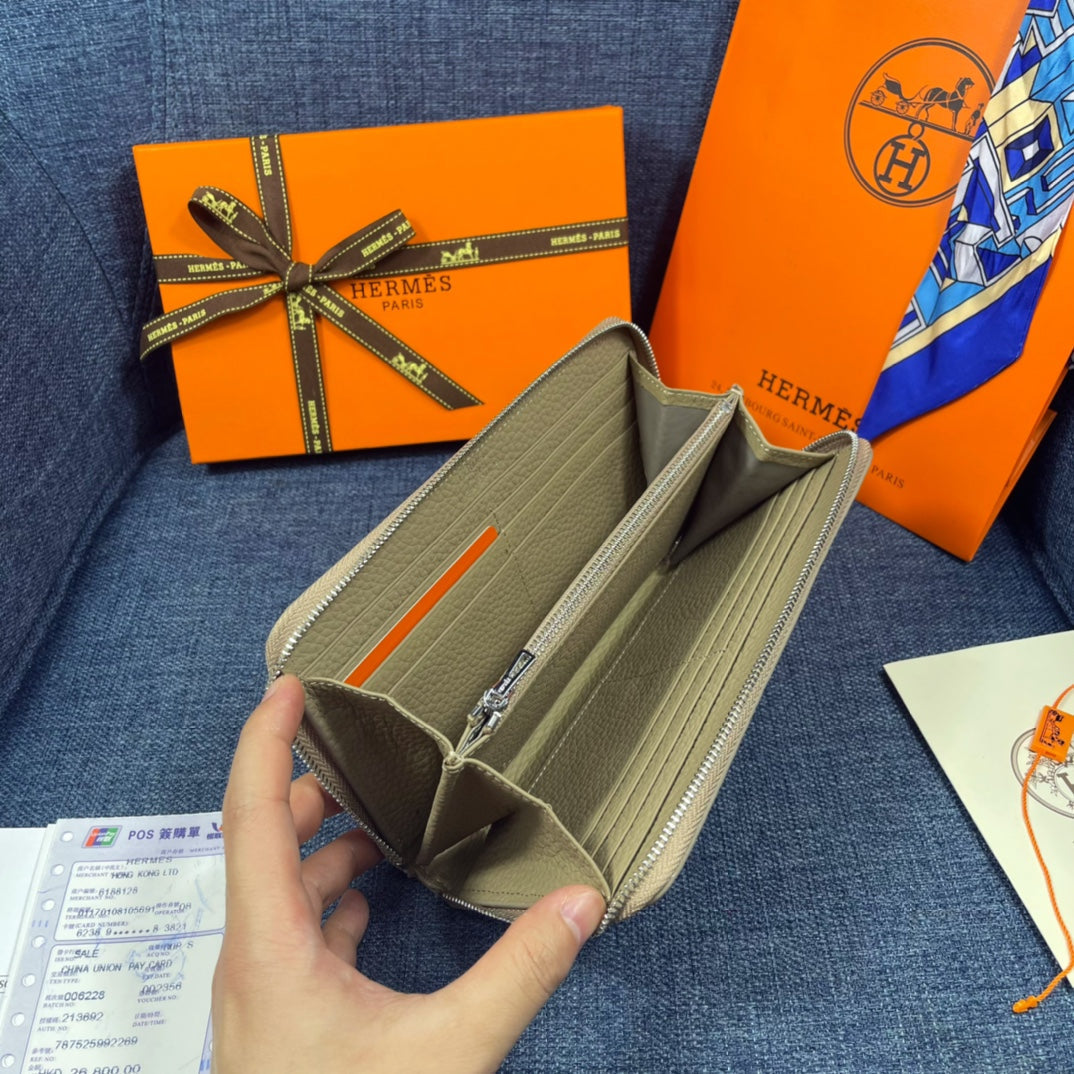HM SILK'IN HOLED WALLET 19 KHAKI GRAINED CALFSKIN