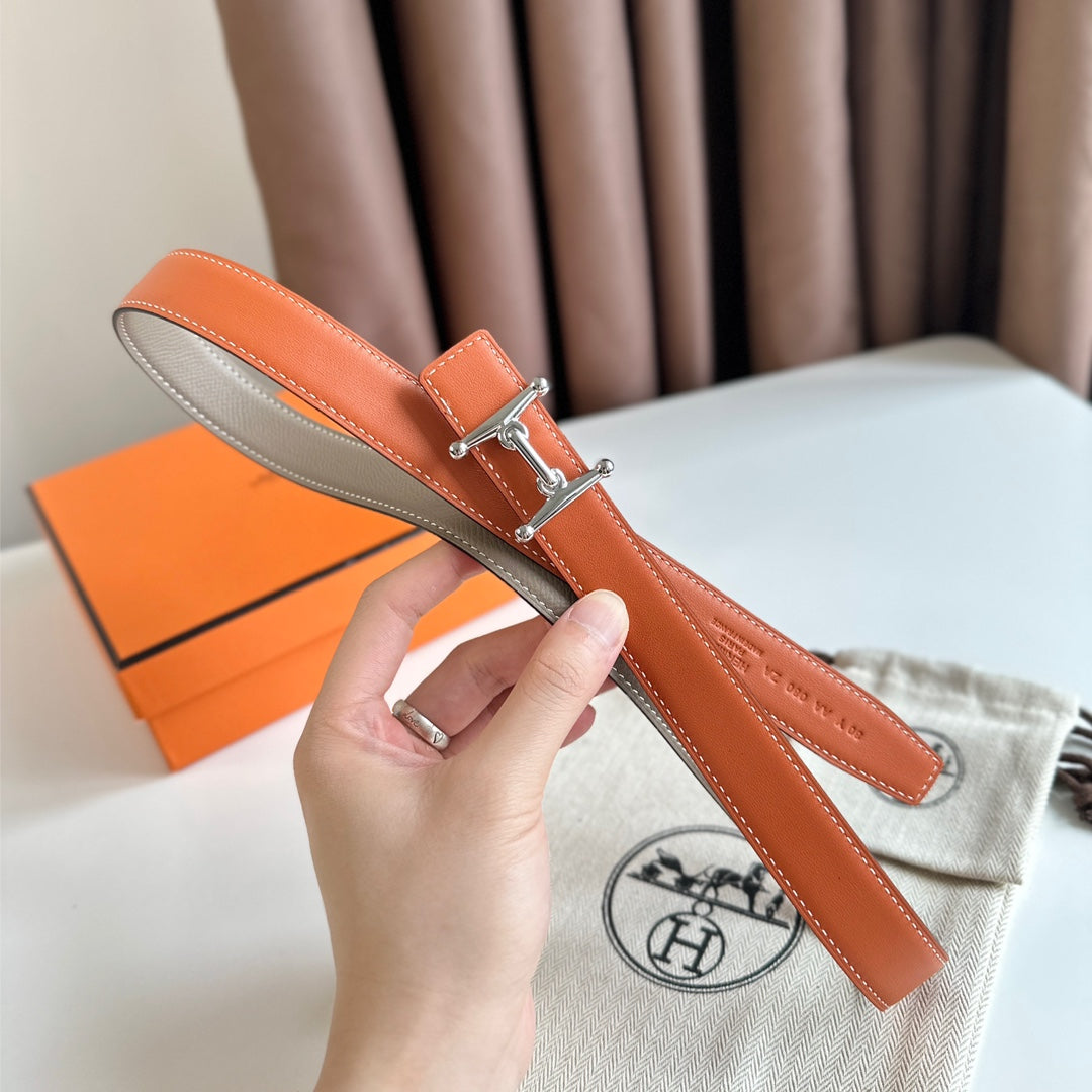 HM Silver Mors H buckle & Reversible 24 mm belt Orange Beige leather 125356