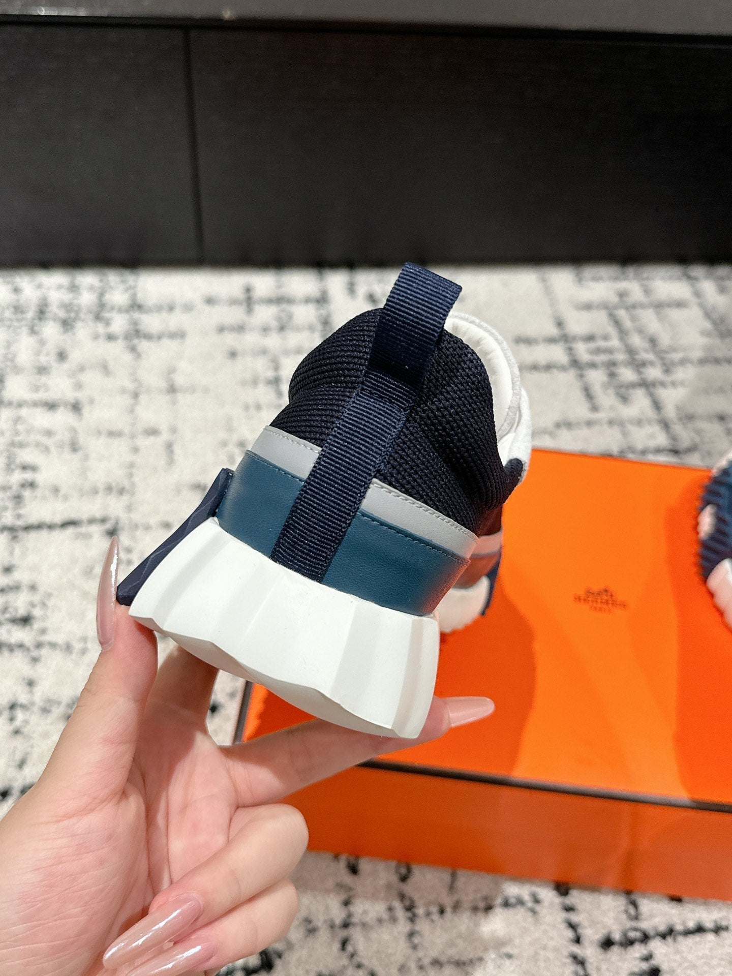 HM Sneaker In Charcoal Blue Mesh Fabric 985314