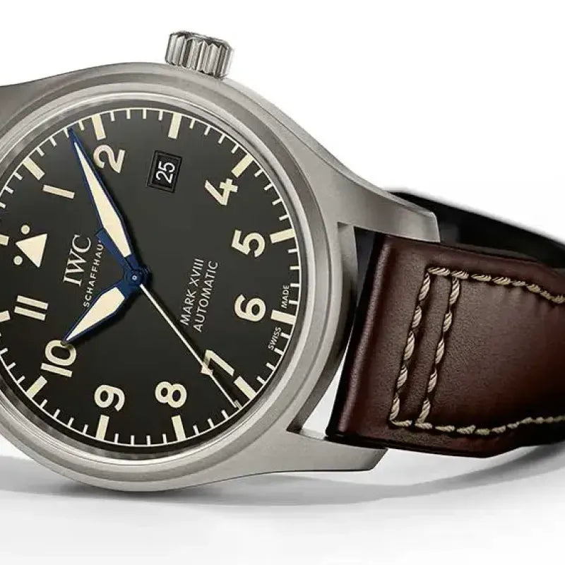 Titanium case, Automatic, self-winding, Diameter 40.0 mm, Black dial with luminescence, Brown calfskin strap, Strap width 20.0 mm.