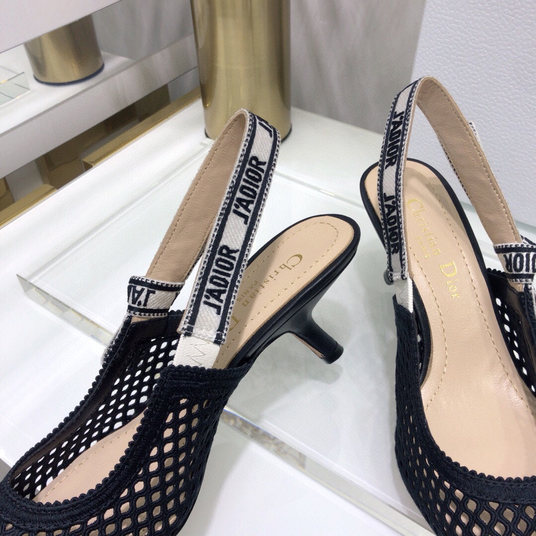 JAdior slingback pumps 65 transparent mesh black embroidered cotton