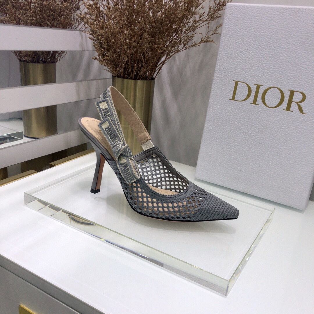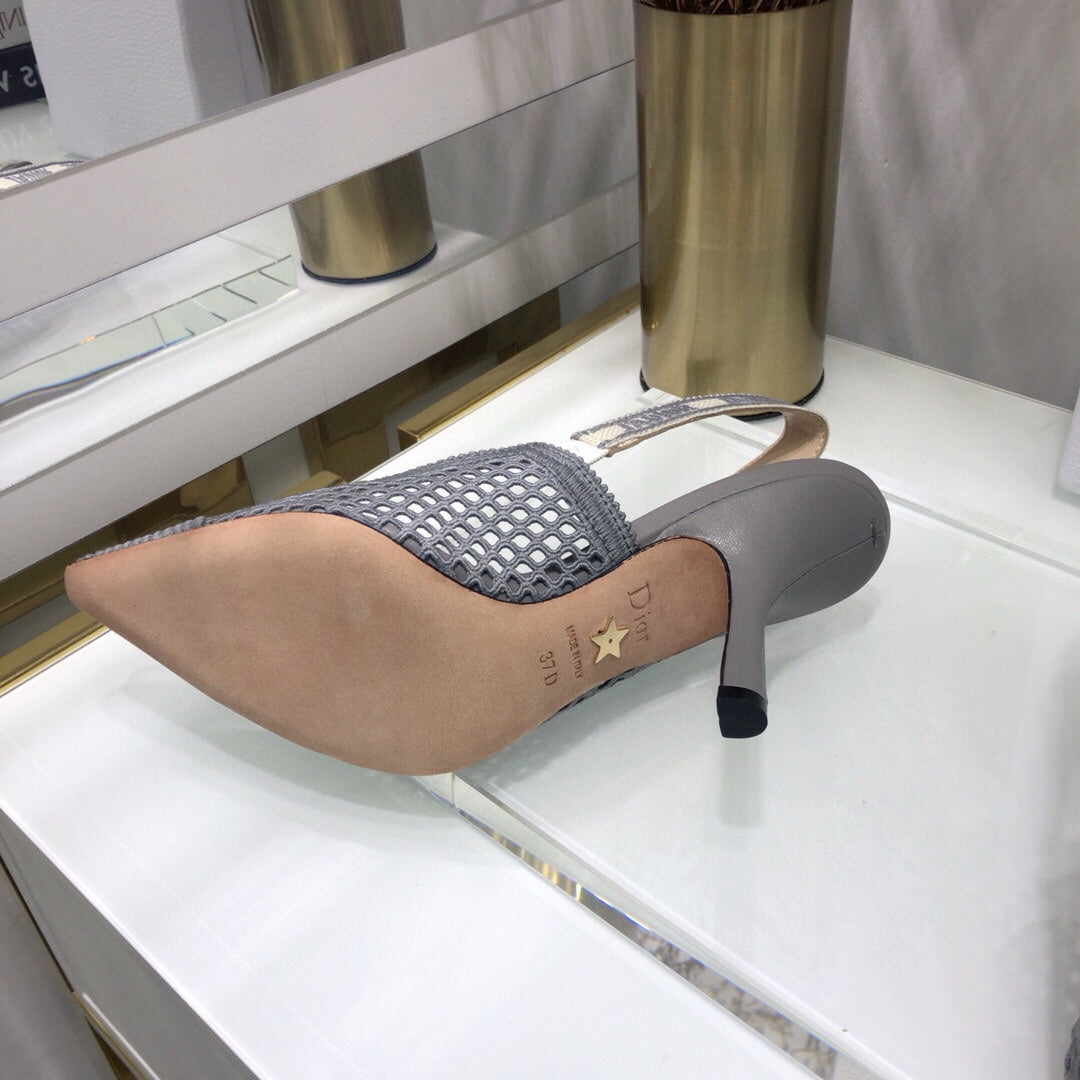 JAdior slingback pumps 95 transparent mesh grey embroidered cotton